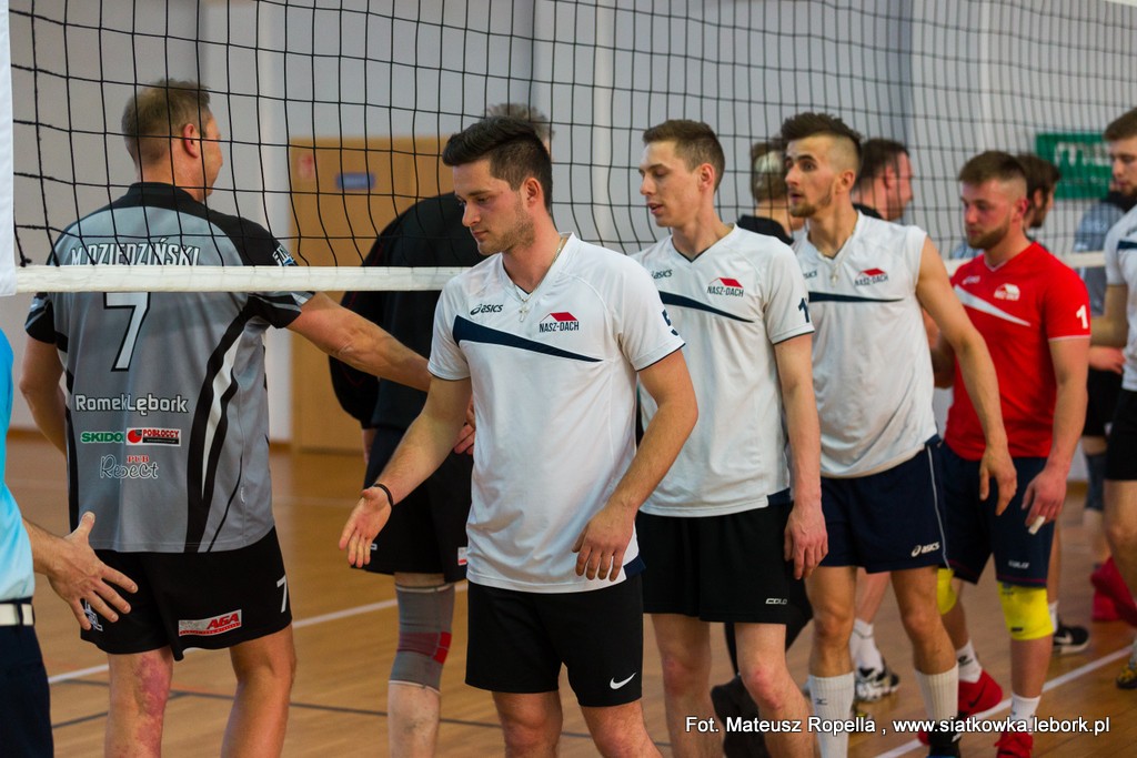 Pierwszy półfinał rozegrany został pomiędzy zespołami Romek Lębork a Nasz Dach Stężyca. Zespół ze Stężycy zdecydowanie wygrał z Romkiem i awansował do finału, w drugim półfinale AZS Lębork po bardzo emocjonującym meczu zwyciężył z MWS Żabka Proterm. W meczu o trzecie miejsce lepsi okazali się zawodnicy MWS Żabka Proterm, pokonując w trzech setach zespół Romka Lębork.