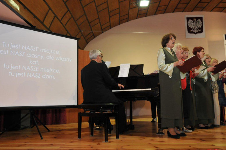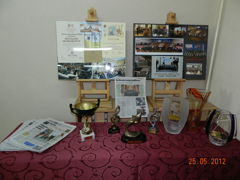 Przed salą można było obejrzeć fotokronikę zespołu z przeglądów i festiwali, wraz z przywiezionymi trofeami. Zespół liczy obecnie 25 osób, a przez te lata śpiewało w chórze ponad 70 osób.