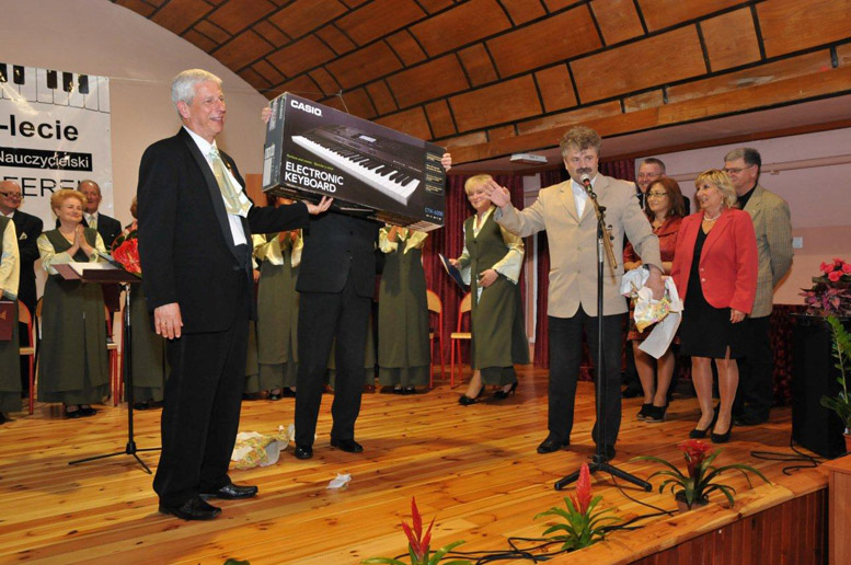 Jak na jubileusz przystało, były liczne życzenia i gratulacje. Burmistrz Miasta w imieniu władz samorządowych wręczył prezent dla chóru w postaci nowych organów.