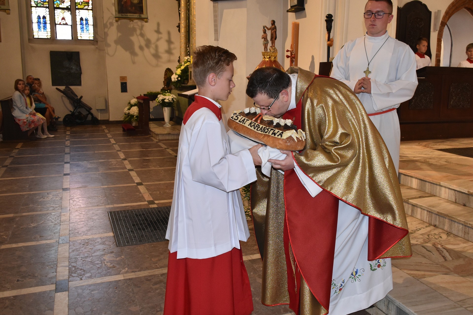 W niedzielę 23 czerwca jubileusz 25-lecia kapłaństwa obchodził proboszcz parafii św. Jakuba Ap. Ojciec Roman Zioła. W uroczystościach wziął m.in. udział Burmistrz Lęborka Witold Namyślak i Sekretarz Miasta Marian Kurzydło oraz Starosta Lęborski Alicja Zajączkowska.