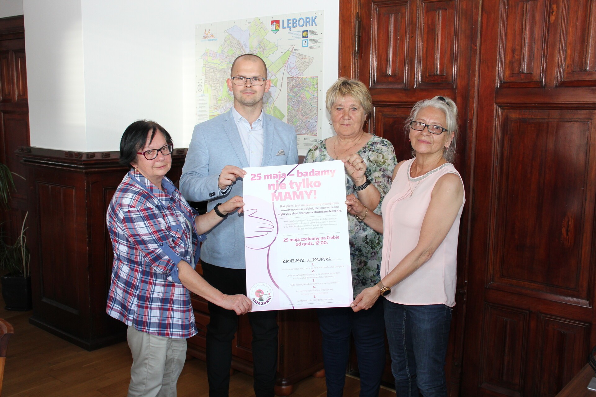 O planowanej akcji „Badamy nie tylko mamy” oraz wielu innych działaniach mówiły na spotkaniu w ratuszu z burmistrzem Jarosławem Litwinem przedstawicielki Stowarzyszenia Amazonek z Lęborka.