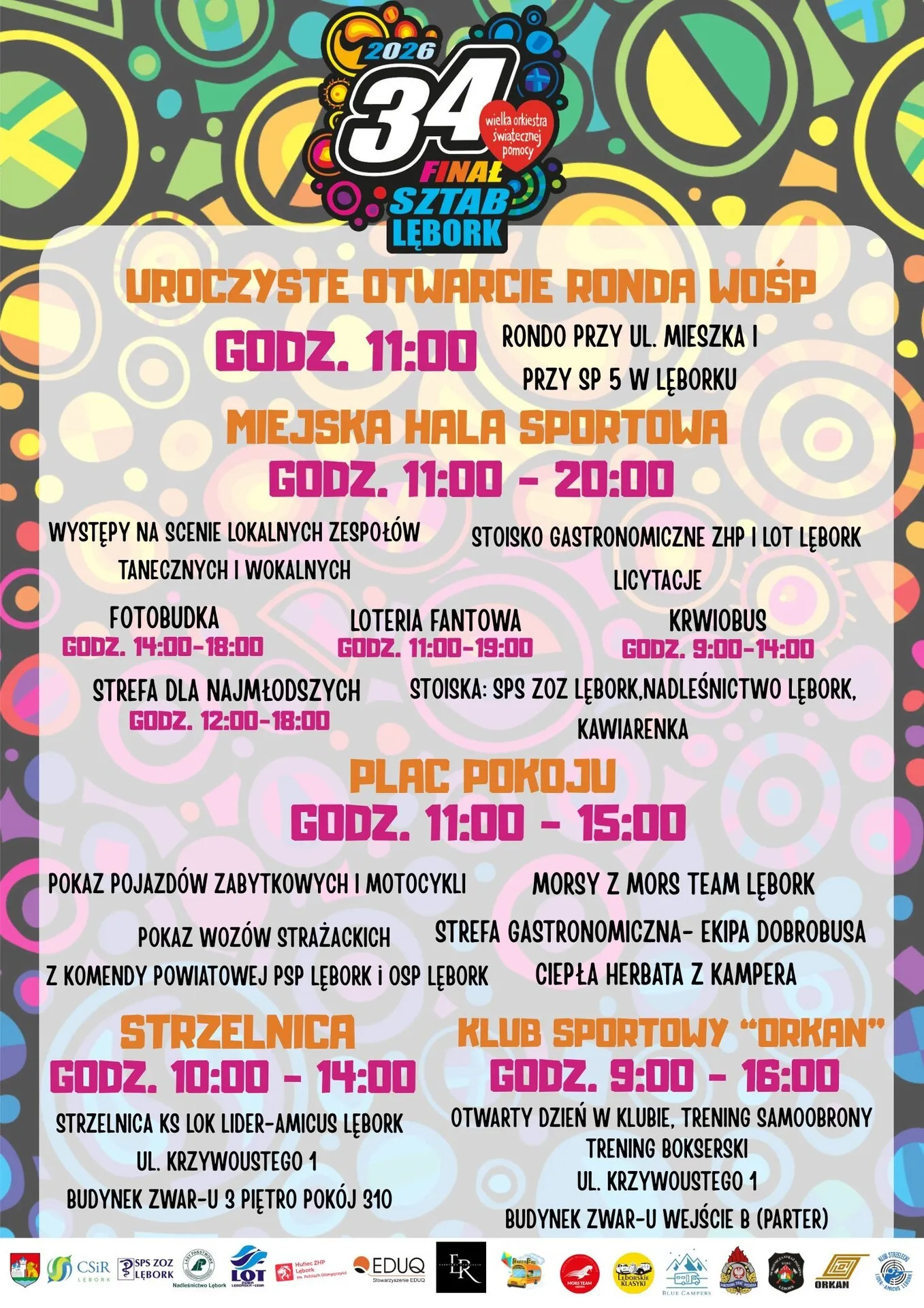 25 stycznia 2026 roku Lębork ponownie zagra razem z Wielką Orkiestrą Świątecznej Pomocy. Główne wydarzenia 34. Finału WOŚP odbędą się w Miejskiej Hali Sportowej przy ulicy P. Skargi 52. Start wspólnego grania zaplanowano na godzinę 12:00.