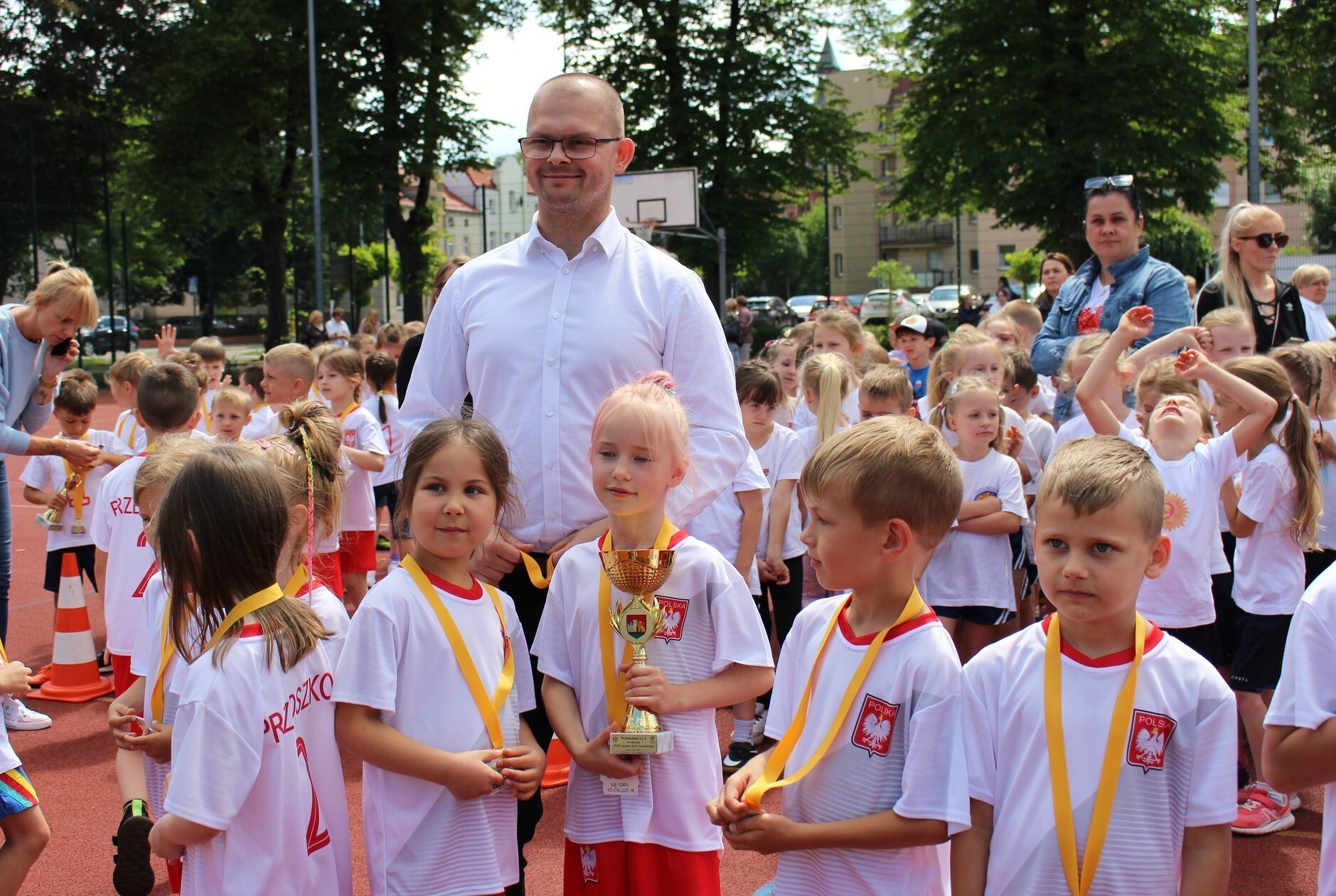 Dzieci z wielkim entuzjazmem i zaangażowaniem uczestniczyły w różnorodnych zabawach sportowych. Postacie Tygryska i Kubusia Puchatka serdecznie witały małych sportowców i zagrzewały ich do rywalizacji. Celem imprezy była integracja najmłodszych oraz rozwijanie ich sprawności fizycznej. Wszystkie przedszkola zostały wyróżnione pierwszym miejscem! Na zakończenie igrzysk wręczono przedszkolom puchary i słodycze, a wszyscy uczestnicy otrzymali pamiątkowe medale z rąk burmistrza Lęborka, Jarosława Litwina, oraz jego zastępcy, Krzysztofa Króla.
