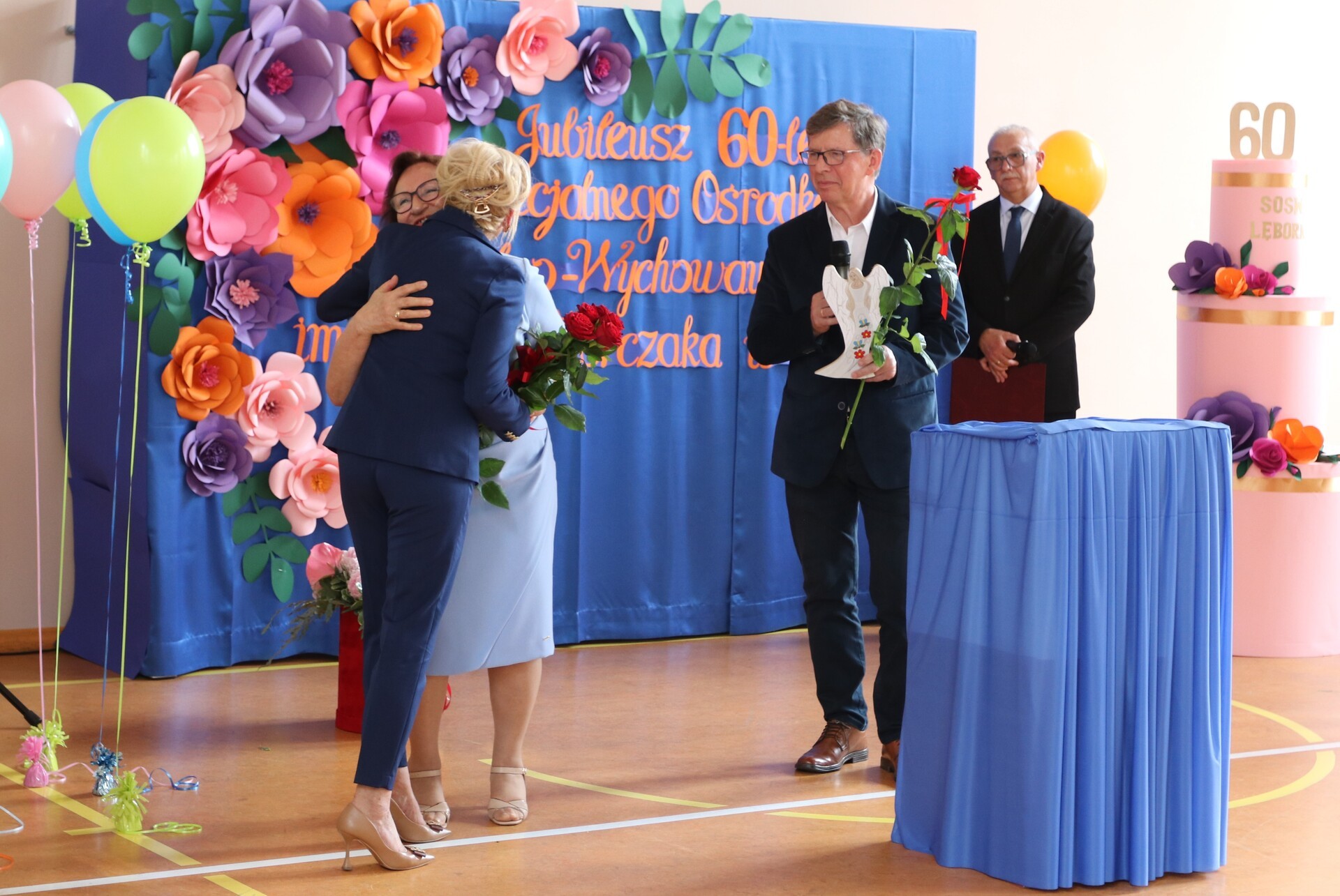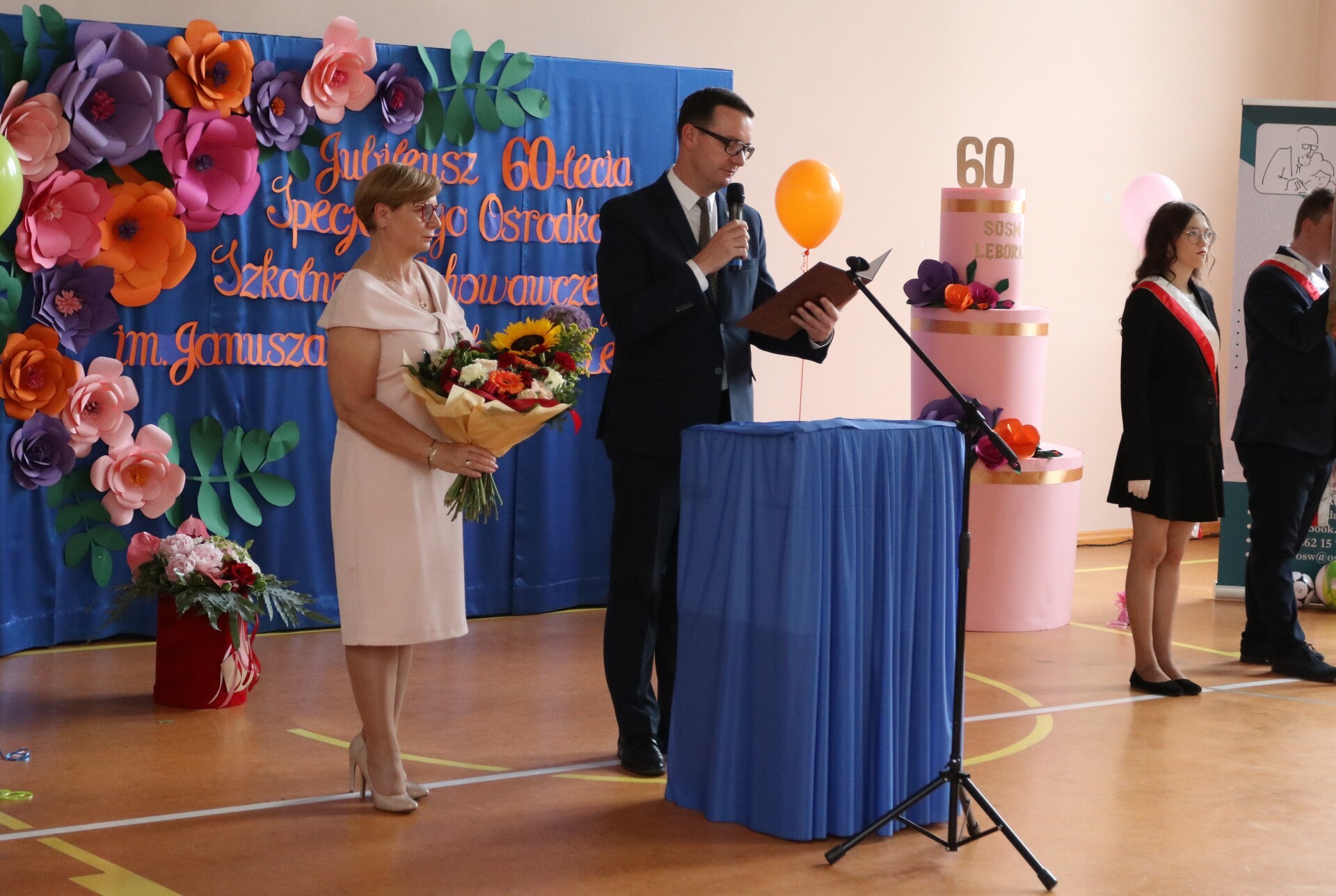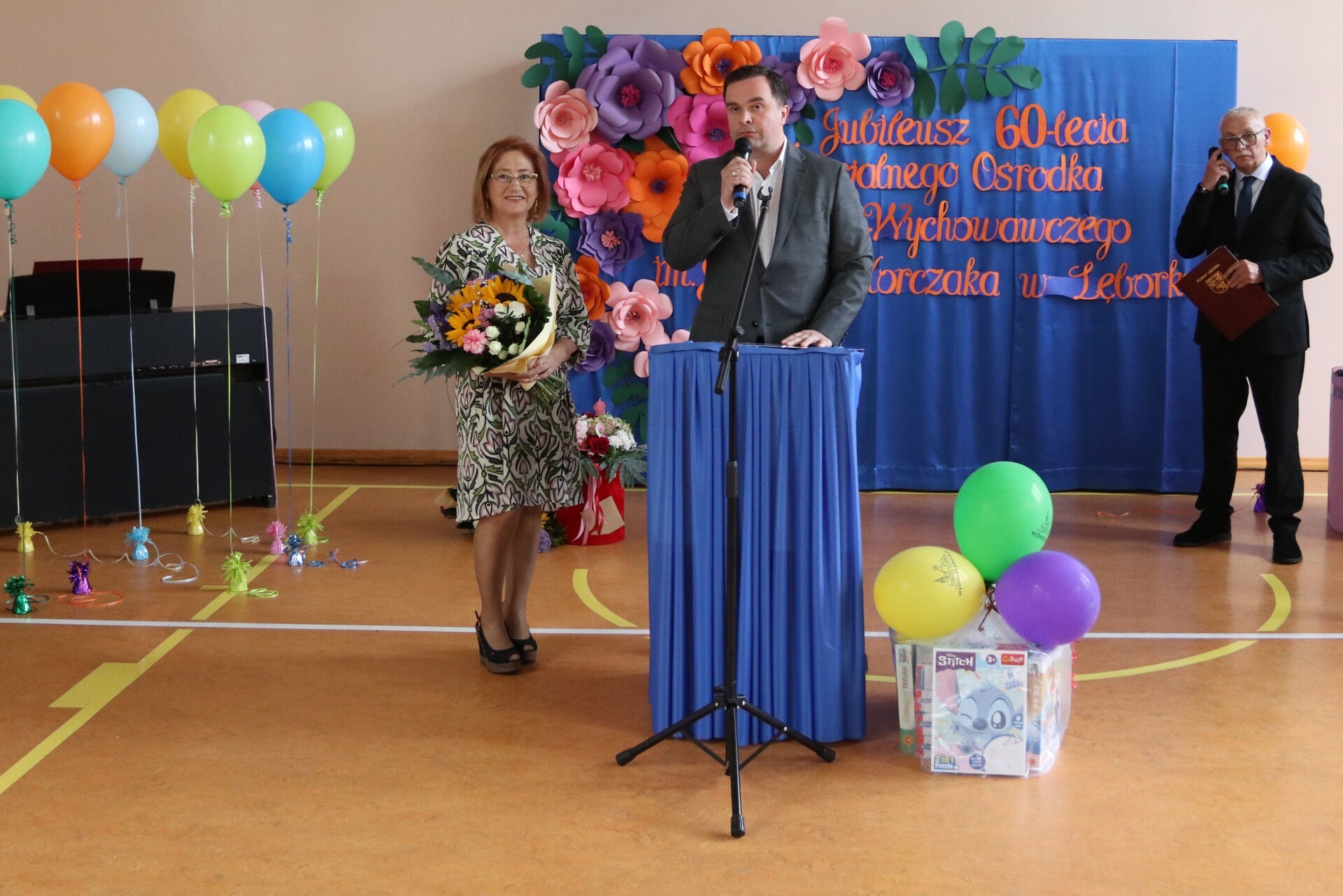 Owacja na stojąco, łzy wzruszenia i gorące brawa – tak rozpoczęła się niezwykła uroczystość 60-lecia Specjalnego Ośrodka Szkolno - Wychowawczego w Lęborku. Sala pękała w szwach, a atmosferę tworzyły emocje, które trudno opisać słowami. Uczniowie i nauczyciele zaprezentowali wyjątkowy występ artystyczny, który poruszył serca wszystkich obecnych. Wśród gości, którzy dzielili to wyjątkowe święto, byli zastępca burmistrza Lęborka Krzysztof Król oraz wiceprzewodnicząca Rady Miejskiej Halina Łukian. Na ręce dyrektor Danuty Rybak przekazali gratulacje, życzenia, pamiątkowy grawerton oraz upominek dla uczniów.