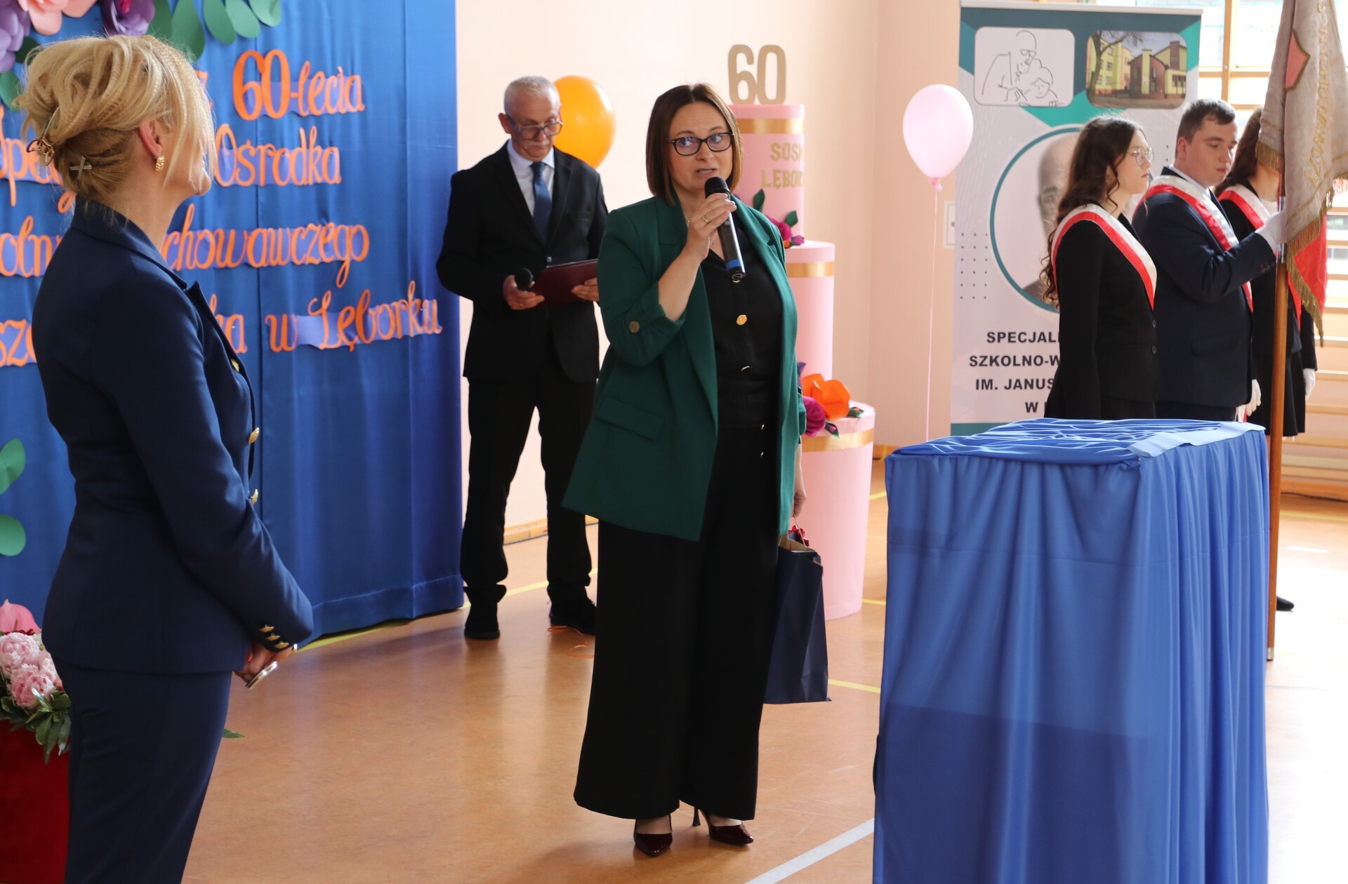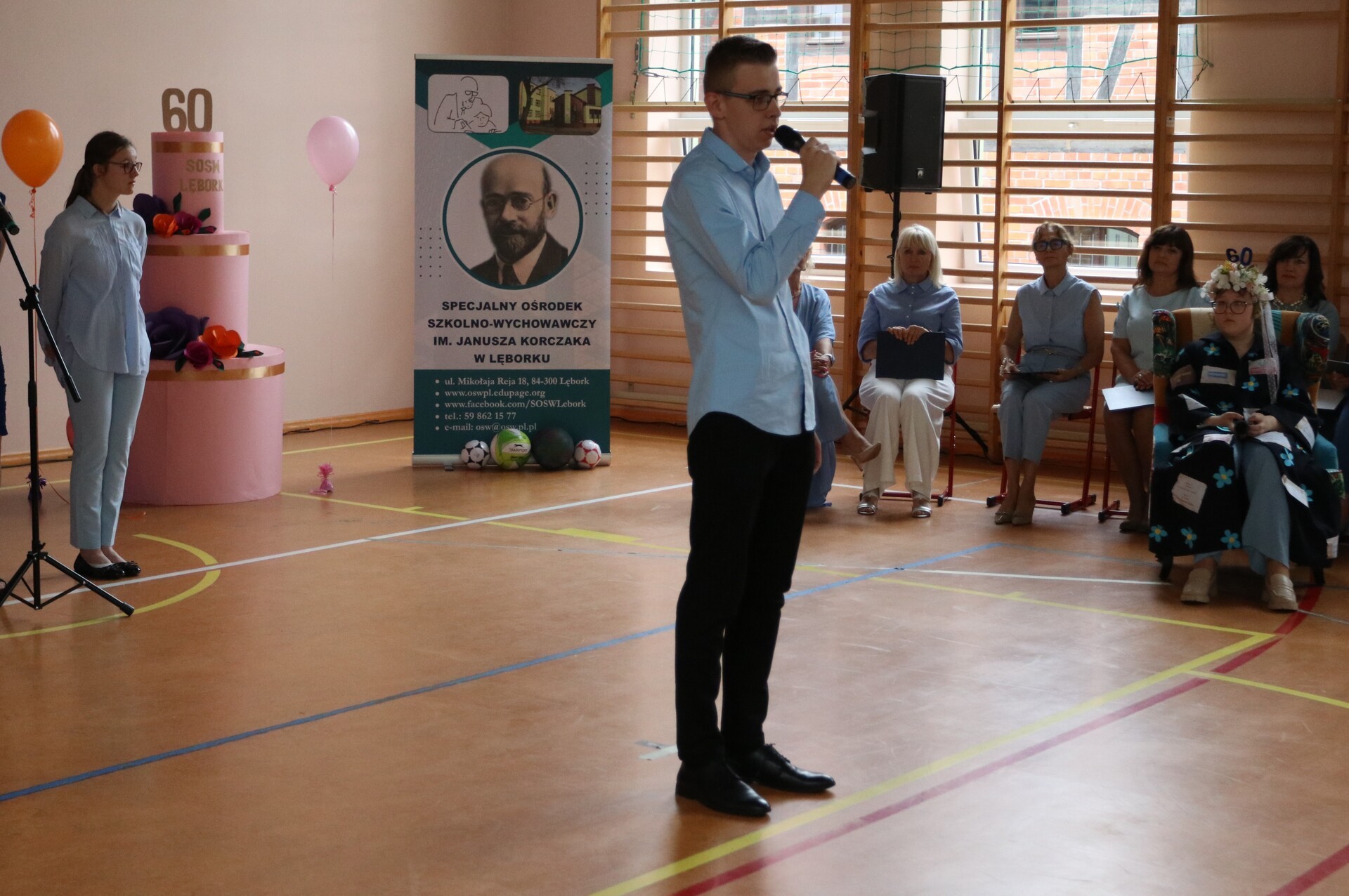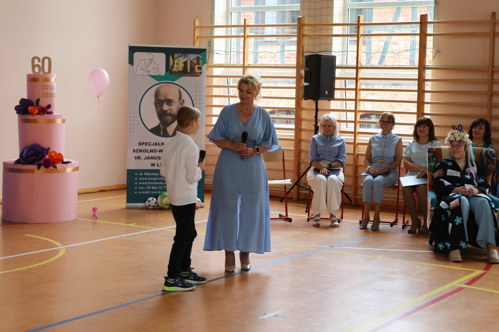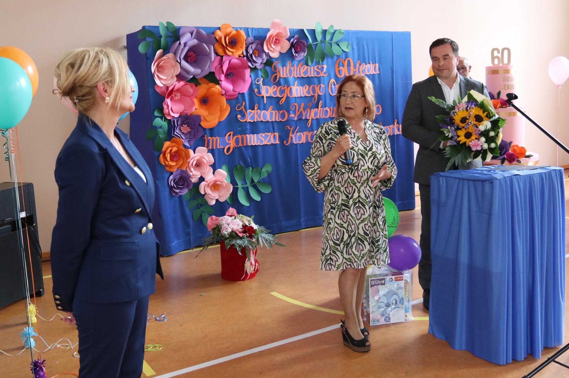 Owacja na stojąco, łzy wzruszenia i gorące brawa – tak rozpoczęła się niezwykła uroczystość 60-lecia Specjalnego Ośrodka Szkolno - Wychowawczego w Lęborku. Sala pękała w szwach, a atmosferę tworzyły emocje, które trudno opisać słowami. Uczniowie i nauczyciele zaprezentowali wyjątkowy występ artystyczny, który poruszył serca wszystkich obecnych. Wśród gości, którzy dzielili to wyjątkowe święto, byli zastępca burmistrza Lęborka Krzysztof Król oraz wiceprzewodnicząca Rady Miejskiej Halina Łukian. Na ręce dyrektor Danuty Rybak przekazali gratulacje, życzenia, pamiątkowy grawerton oraz upominek dla uczniów.