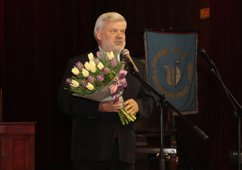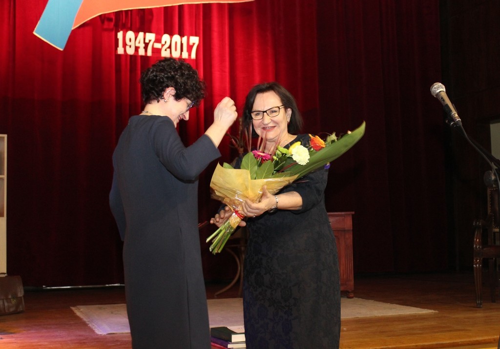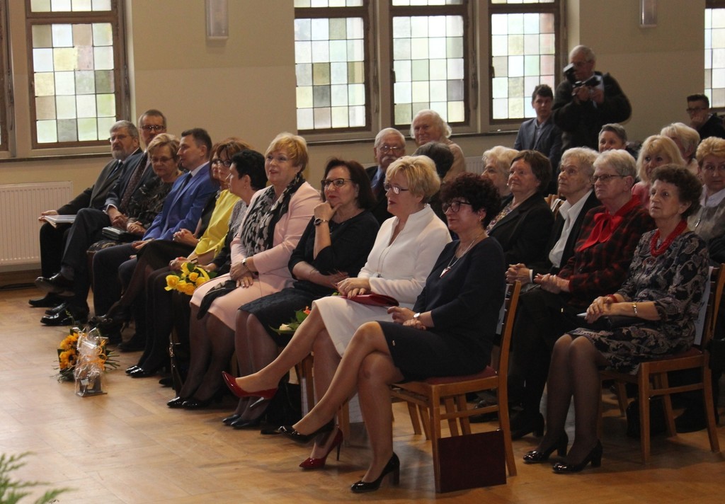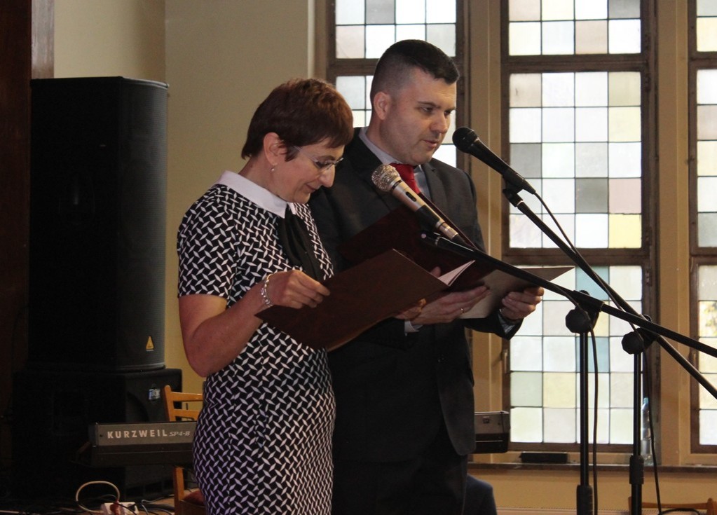 Sentymentalna Gala wypełniła 21 kwietnia br. aulę szkoły prawie do ostatniego miejsca. W imieniu Burmistrza Lęborka Witolda Namyślaka na ręce Joanny Majer, Dyrektor Zespołu Szkół Ogólnokształcących nr 2 życzenia na pamiątkowym grawertonie przekazała Doradca Burmistrza i Radna Sejmiku Województwa Pomorskiego Alicja Zajączkowska.