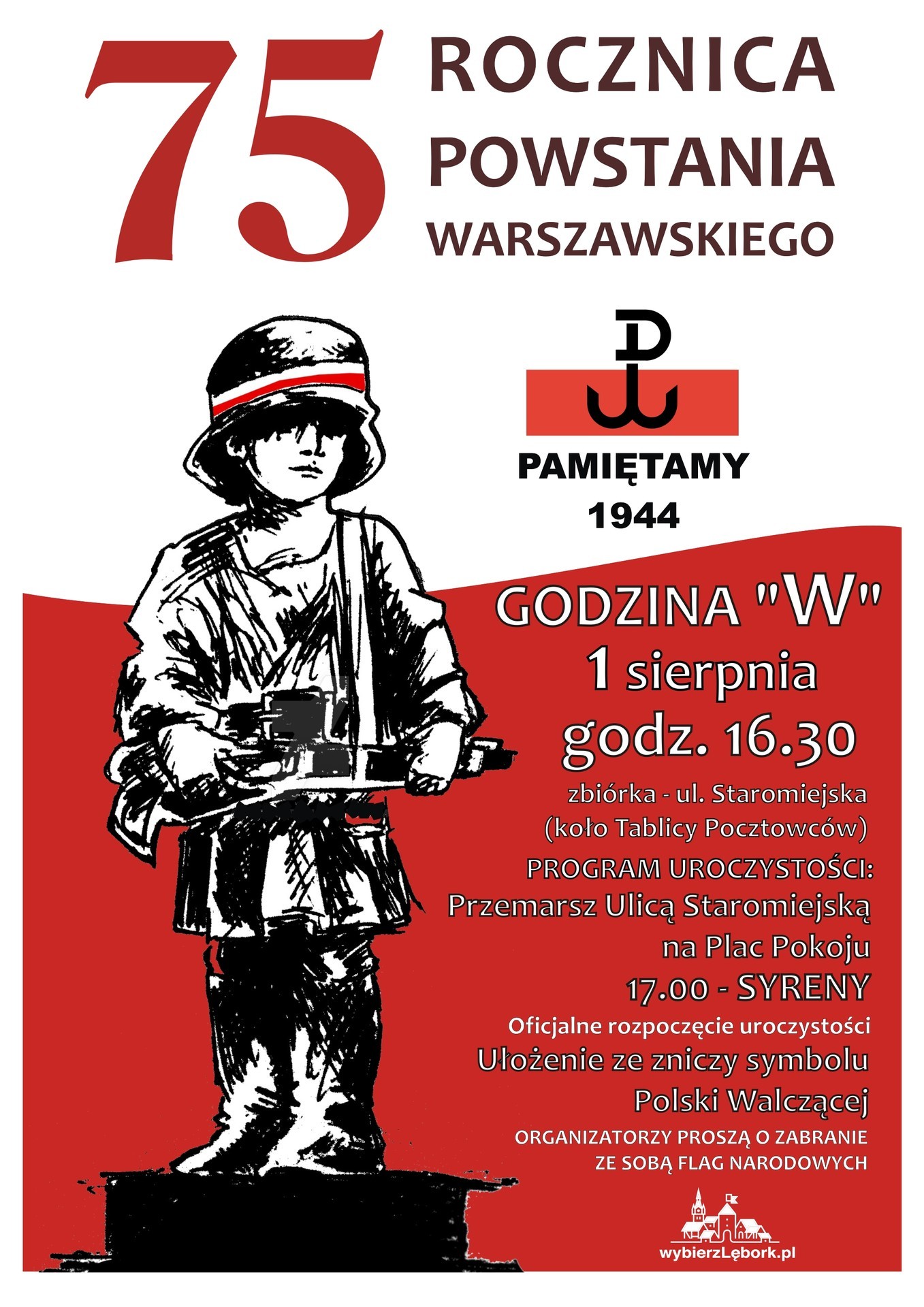 1 sierpnia br. o godzinie 17.00 na Placu Pokoju odbędą się uroczystości związane z 75 rocznicą Powstania Warszawskiego.