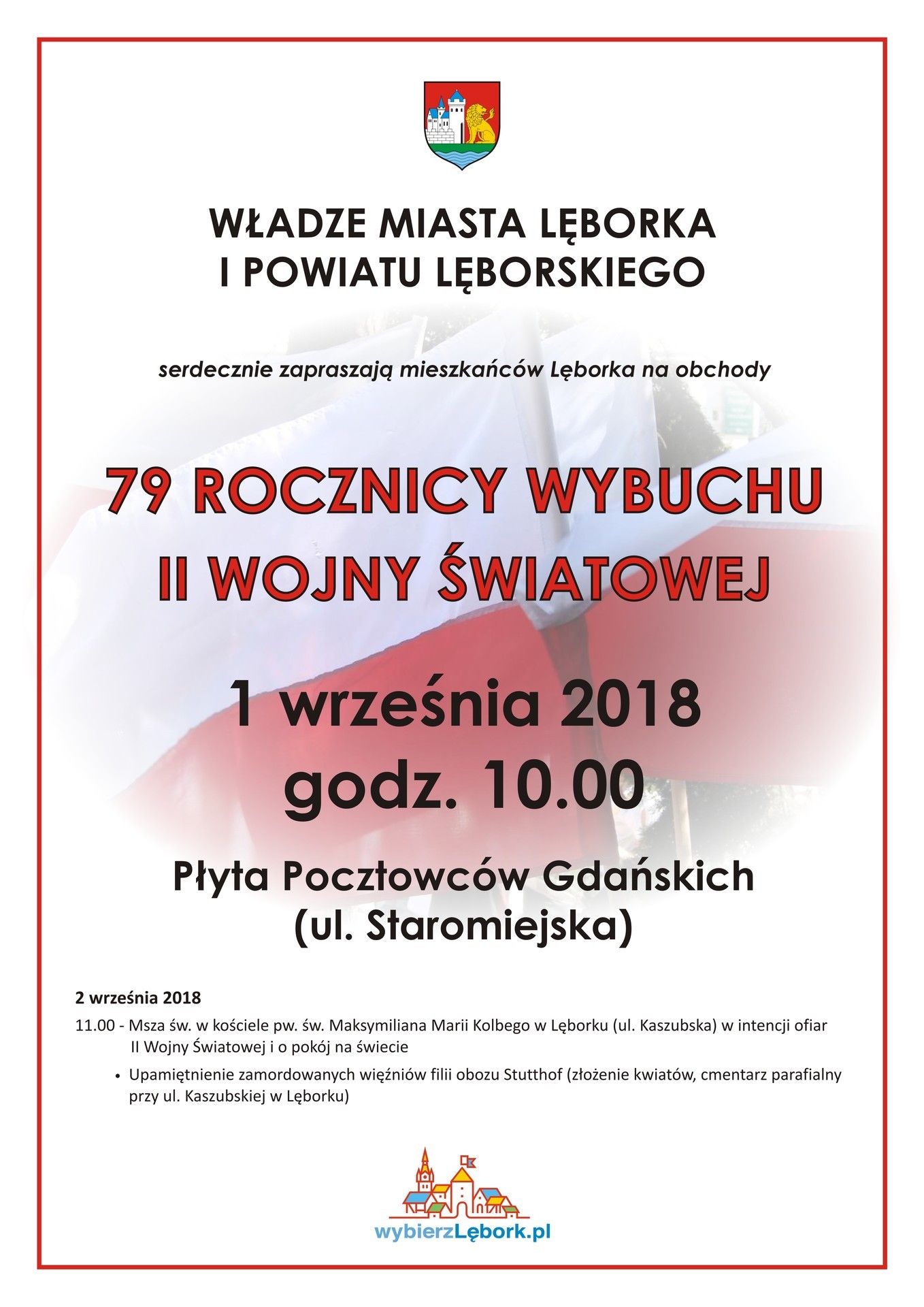 W dniu 2 września o godz.11.00 odprawiona zostanie msza św. w kościele pw. św. Maksymiliana Kolbego, w intencji ofiar II Wojny Światowej i o pokój na świecie. Następnie zostaną złożone kwiaty na na grobach zamordowanych więźniów filii obozu Stutthof na cmentarzu parafialnym w Lęborku.