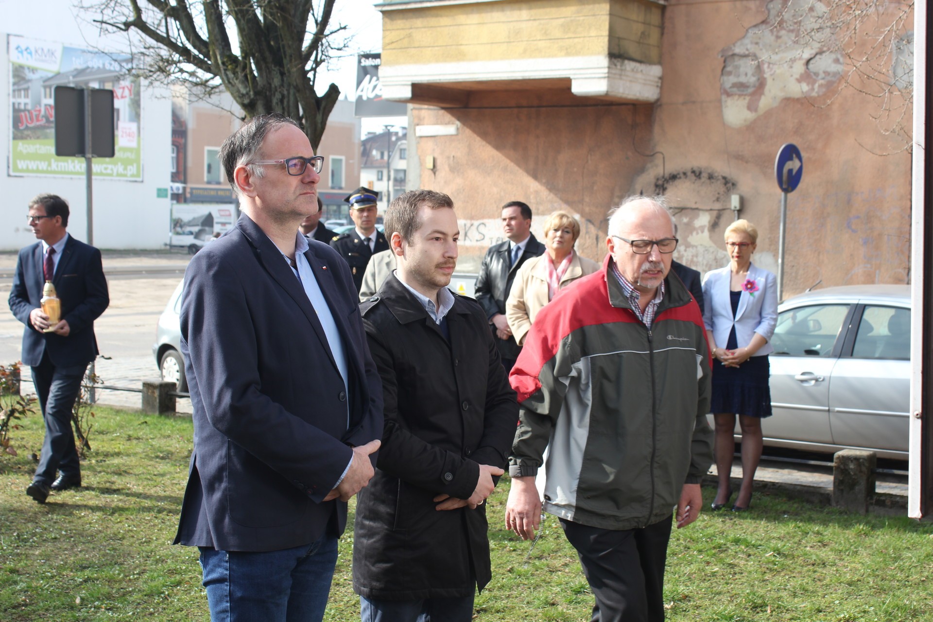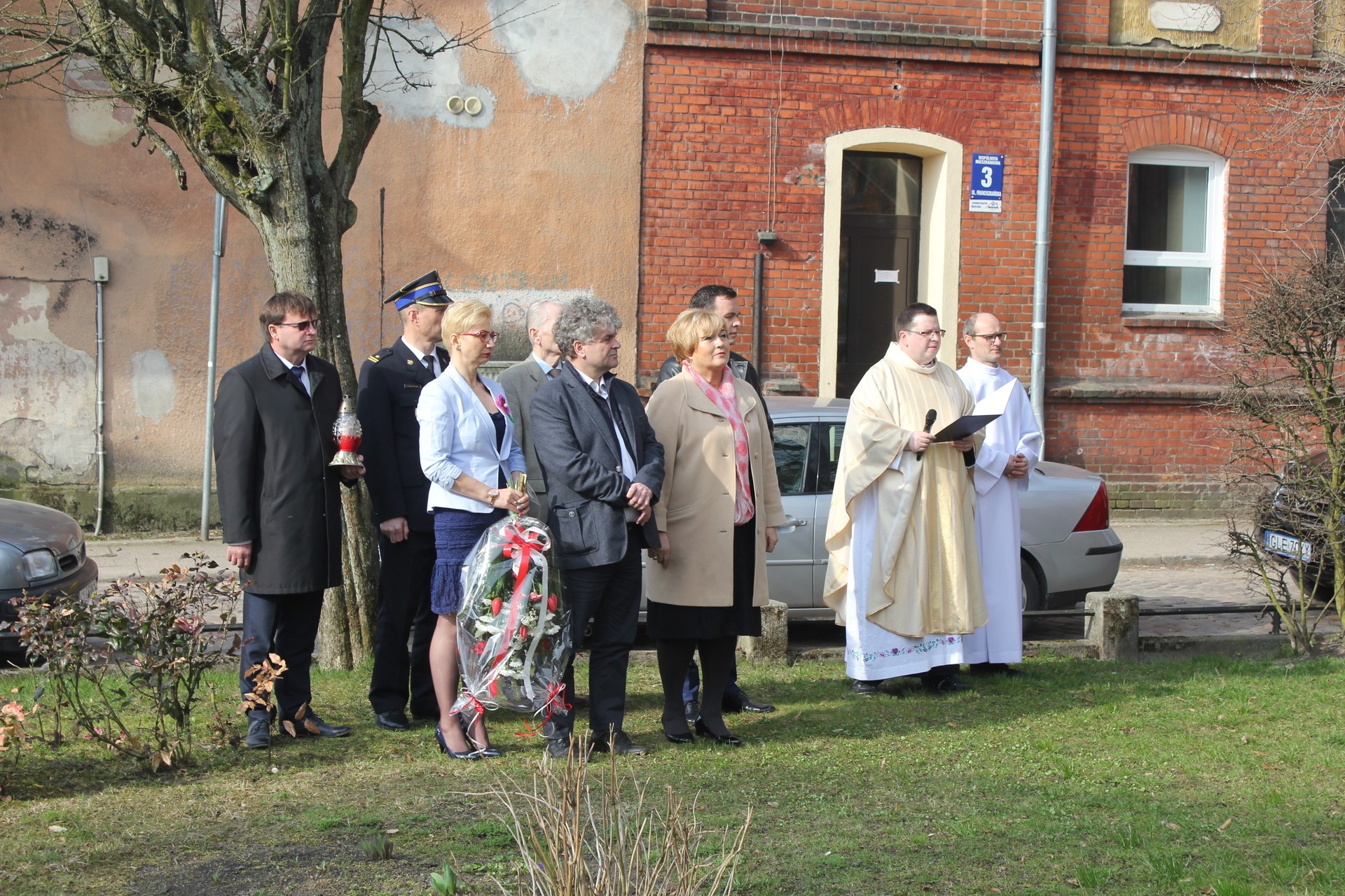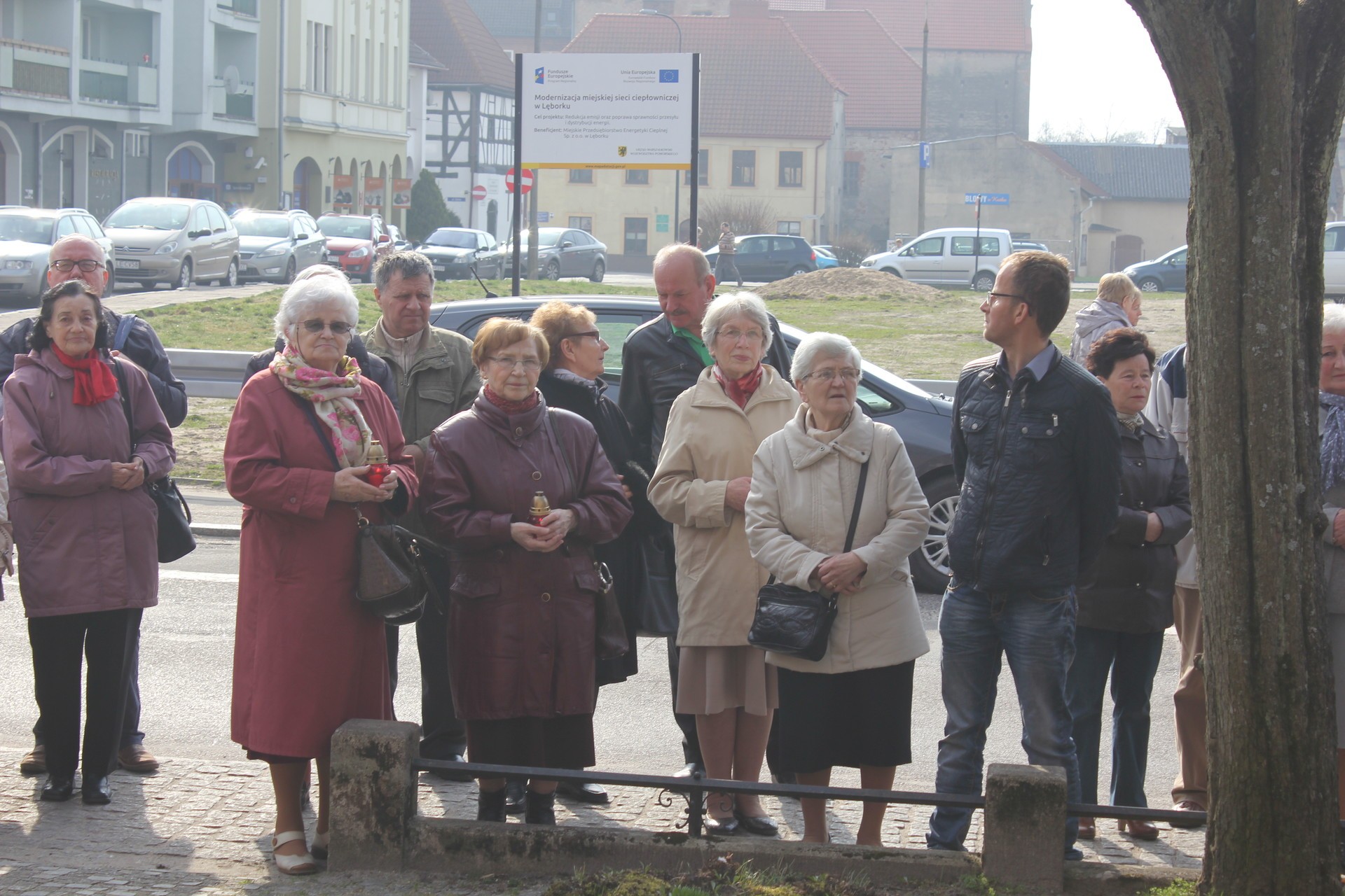 Dźwięk syren o godz. 8.41 przypomniał dziś mieszkańcom Lęborka o obchodzonej 8. rocznicy Katastrofy Smoleńskiej. W tym czasie pod tablicą pamiątkową przy Sanktuarium św. Jakuba Ap. spotkały się władze miasta i powiatu by wspólnie z mieszkańcami uczcić w skupieniu ofiary katastrofy lotniczej. Po Mszy Św. w intencji ofiar katastrofy i ich rodzin oraz Ojczyzny odprawionej przez o. Romana Ziołę pod pamiątkową tablicą złożone zostały kwiaty i zapalone znicze. W imieniu władz miejskich kwiaty złożył Burmistrz Lęborka Witold Namyślak i Naczelnik Wydziału Współpracy i Rozwoju Urzędu Miejskiego Elżbieta Rekowska-Klassa. Władze powiatu w oficjalnej delegacji reprezentowała Wicestarosta Powiatu Lęborskiego Elżbieta Godderis i Sekretarz Powiatu Lęborskiego Krzysztof Król.