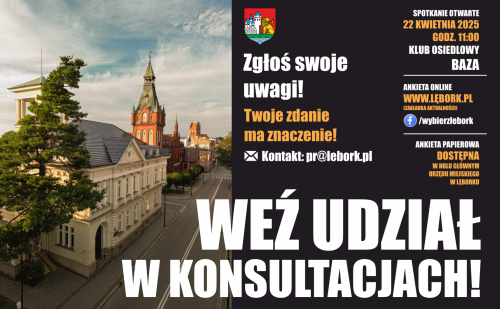 Informujemy, że w piątek, 18 kwietnia 2025 r., Urząd Miejski w Lęborku będzie czynny do godziny 12:00. Prosimy o uwzględnienie tej zmiany przy planowaniu wizyty w urzędzie. Za ewentualne niedogodności przepraszamy.