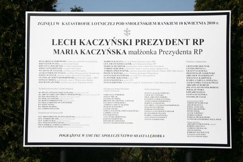 W związku z katastrofą lotniczą pod Smoleńskiem i śmiercią Prezydenta Lecha Kaczyńskiego, jego małżonki oraz towarzyszących im przedstawicieli najważniejszych władz cywilnych, wojskowych i kościelnych mieszkańcy Lęborka łączą się w smutku z najbliższymi tragicznie zmarłych ofiar. Sobotniego ranka 10 kwietnia 2010r. na lotnisku pod Smoleńskiem zginął kwiat polskiego życia społecznego i politycznego. Prawie stu Synów i Córek narodu polskiego pełniąc służbę państwową niespodziewanie złożyło ofiarę życia.