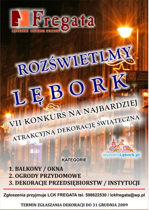 Tradycyjnie w okresie świątecznym w Lęborku organizowany jest Konkurs Świąteczny na Najbardziej Atrakcyjną Dekorację Świąteczną pod hasłem „Rozświetlmy Lębork". Konkurs z roku na rok przyciąga coraz więcej uczestników, a miasto wygląda w tym szczególnym czasie coraz bardziej urokliwie.- Stowarzyszenie Gmin i Powiatów Małopolski z siedzibą w Krakowie apeluje o włączenie się do Akcji Pomocy Represjonowanym Polakom na Białorusi.