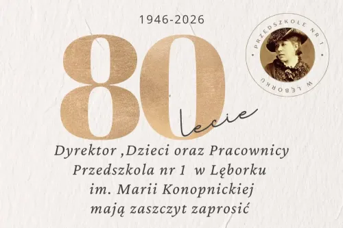 Z radością i dumą zapraszamy do wspólnego świętowania 80-lecia działalności Przedszkola nr 1 im. Marii Konopnickiej w Lęborku – miejsca, które od ośmiu dekad towarzyszy kolejnym pokoleniom dzieci w ich pierwszych krokach ku wiedzy, przyjaźni i samodzielności.