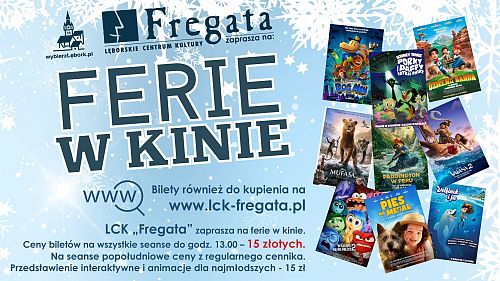 Lęborskie Centrum Kultury "Fregata" zaprasza na "Ferie w Kinie". Ceny biletów na wszystkie seanse rozpoczynające się do godziny 13:00 to 15 złotych. Na seanse popołudniowe obowiązują ceny z regularnego cennika.