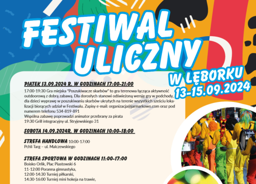 Nie przegap ostatniego dnia Festiwalu Ulicznego w Lęborku! W STREFIE KIDS w Klubie Osiedlowym „BAZA” (12:00-17:00) dzieci mogą się bawić na dmuchanej zjeżdżalni, skorzystać z bezpłatnej waty cukrowej i popcornu oraz cieszyć się malowaniem buziek, brokatowymi tatuażami, warkoczykami i bańkami mydlanymi.