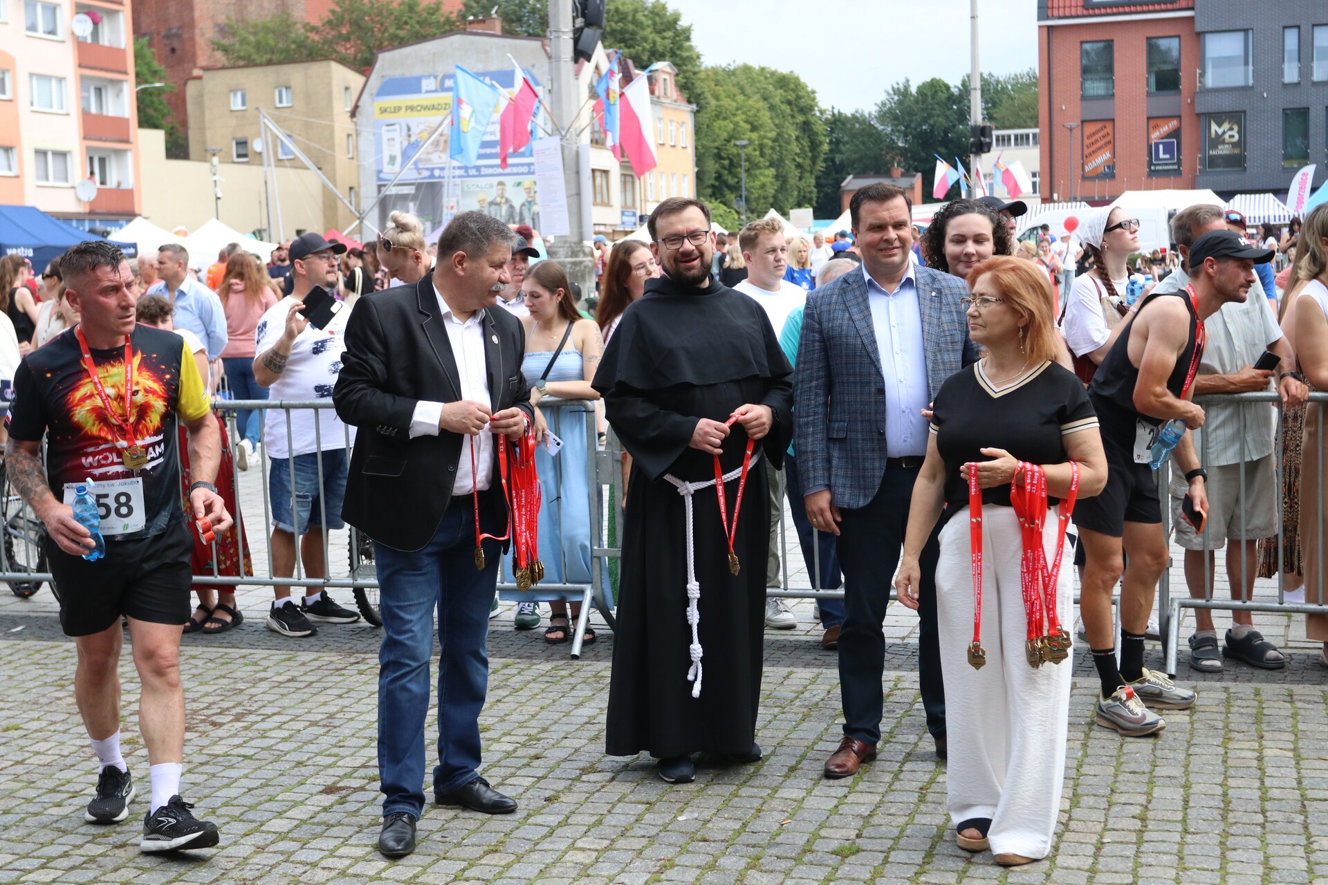 Sportowcom kibicowała posłanka na Sejm Rzeczypospolitej Polskiej Wioleta Tomczak, burmistrz Miasta Lęborka Jarosław Litwin i zastępca burmistrza Krzysztof Król, wiceprzewodnicząca Rady Miejskiej Halina Łukian, radni miejscy Małgorzata Barańska, Magdalena Miedzińska, Leszek Leciejewski, Łukasz Hrycyk, przewodniczący Rady Powiatu Lęborskiego Mirosław Tandek i radna Karina Brozdowska oraz o. Damian Basarab, proboszcz parafii św. Jakuba Ap. i starszy Cechu Rzemiosł i Przedsiębiorczości Roman Chmielecki. Na mecie gratulowali i wręczali zawodniczkom i zawodnikom medale.
