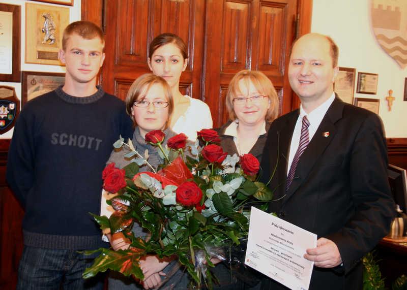 Podczas spotkania Prezesa Stowarzyszenia EDUQ Aliny Fegler-Kotkiewcz i grupy młodzieży w lęborskim ratuszu podsumowano projekty młodzieży, dla najlepszych grup Burmistrz Klata przygotował upominki.