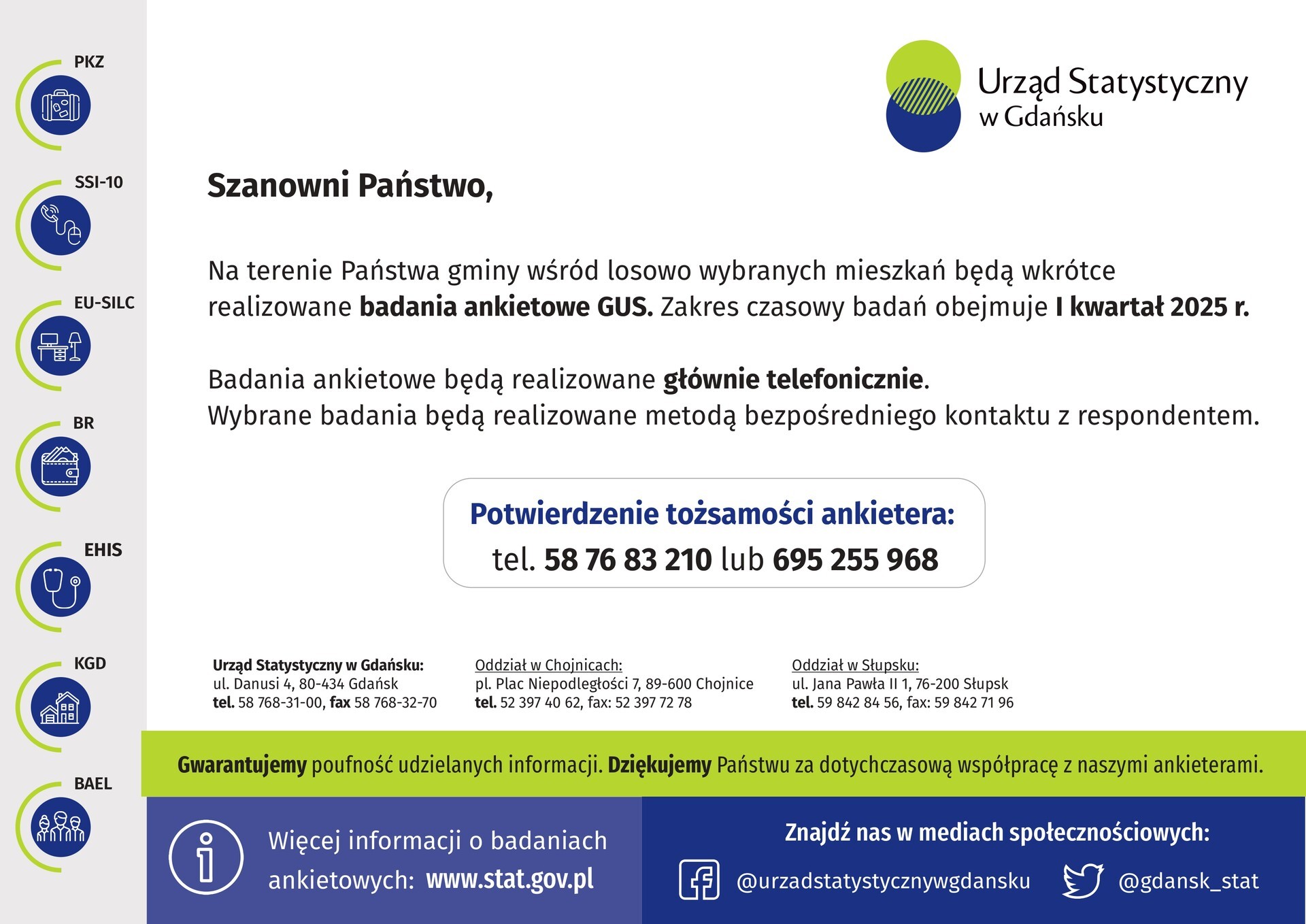 Potwierdzenie tożsamości ankietera: tel. 58 76 83 210 lub 695 255 968