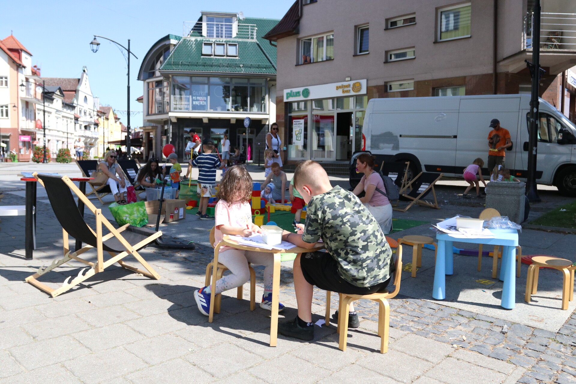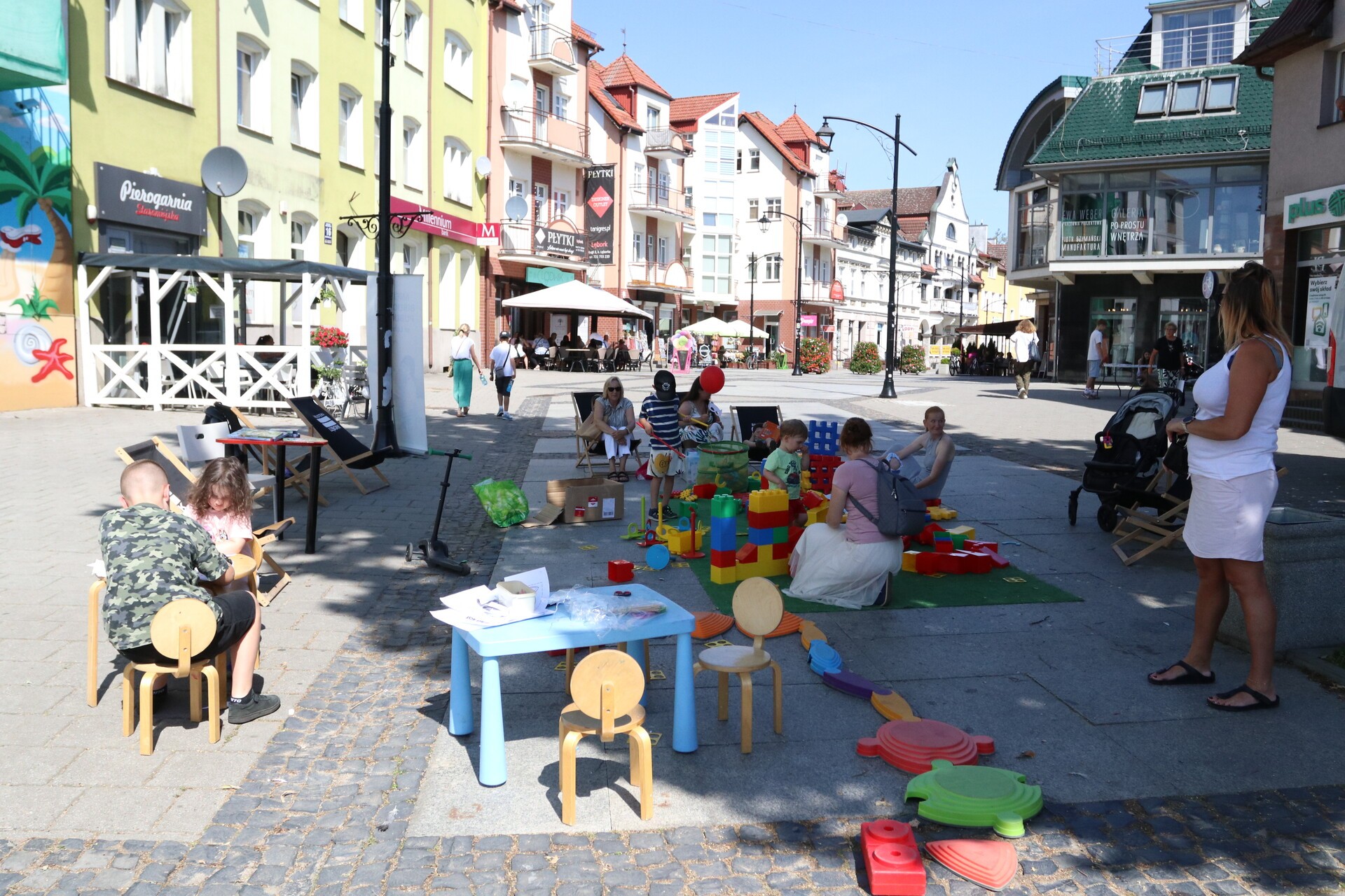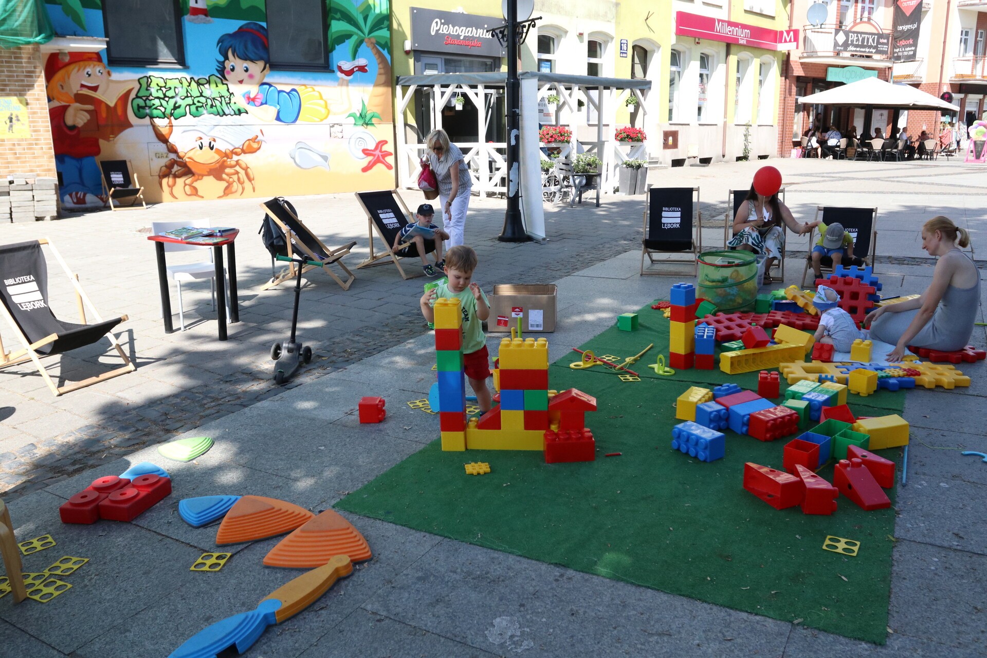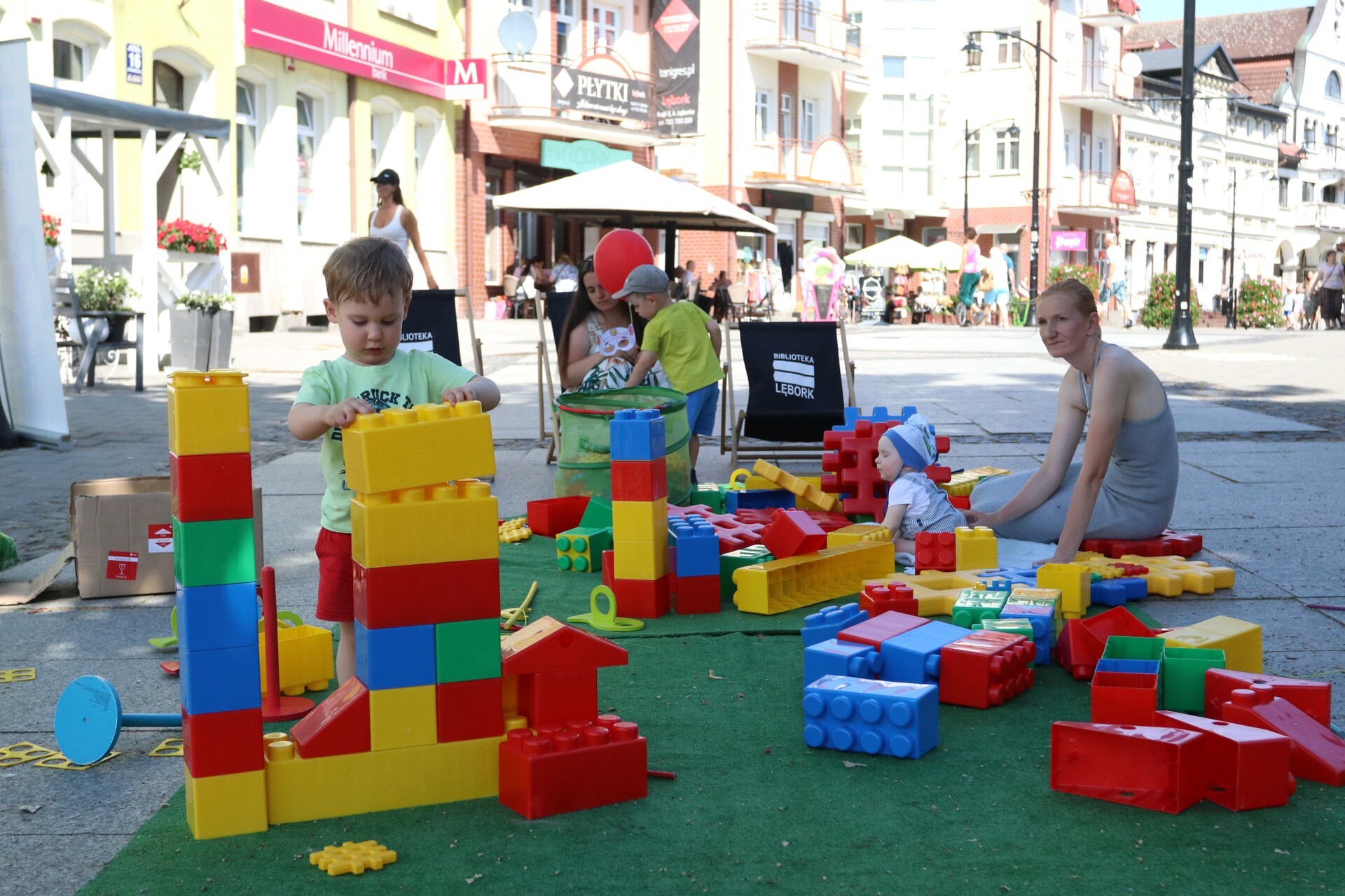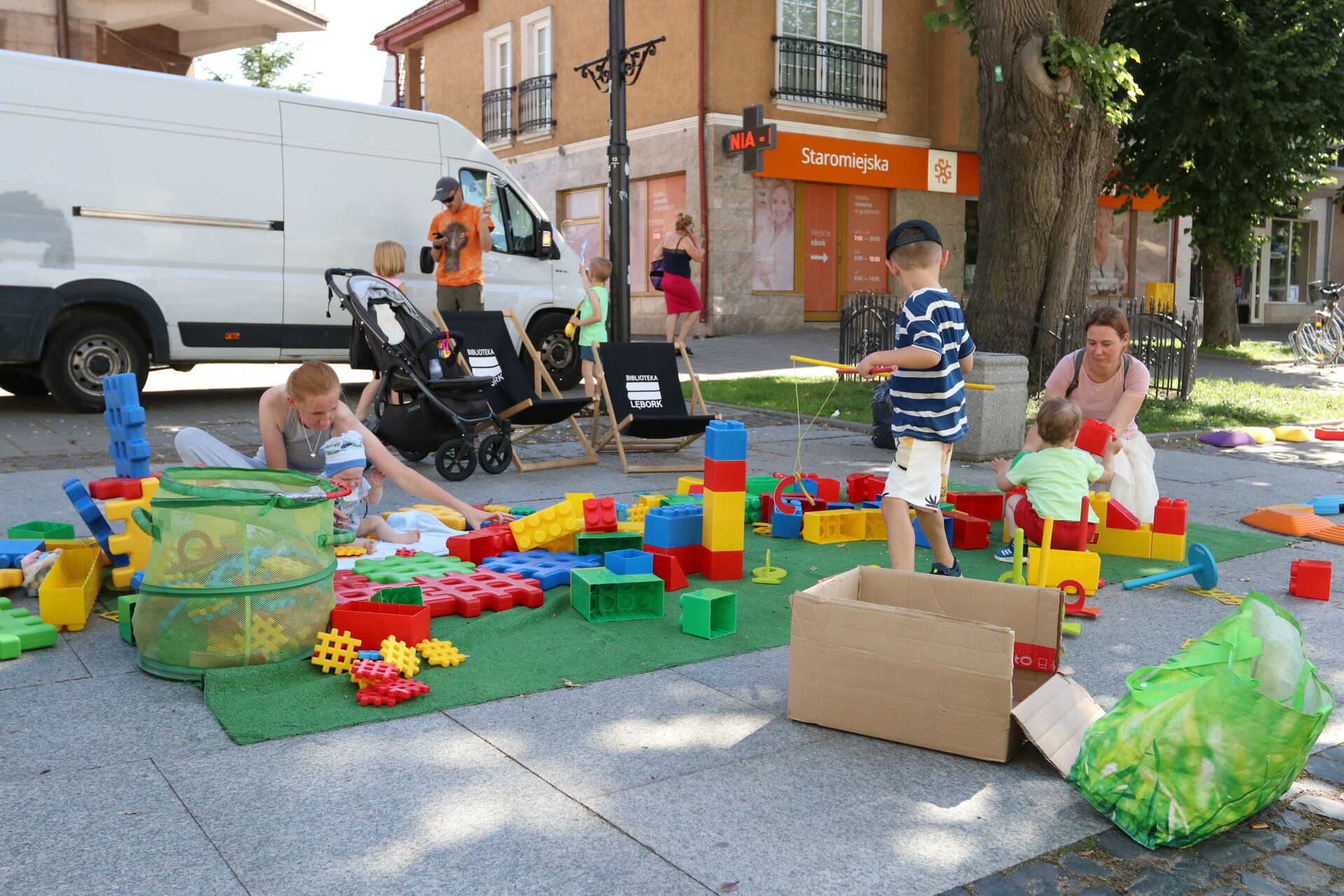 Na ul. Staromiejskiej jeszcze do godziny 16:00 czekają atrakcje. Można też zapisać się do biblioteki, wypożyczać i czytać książki oraz po prostu spędzić miło czas. Dzieci korzystają z toru przeszkód, klocków wielkoformatowych i kolorowanek z postaciami z ulubionych bajek, a chętni mogą przygotować sobie maskę księżniczki, jednorożca lub Batmana.