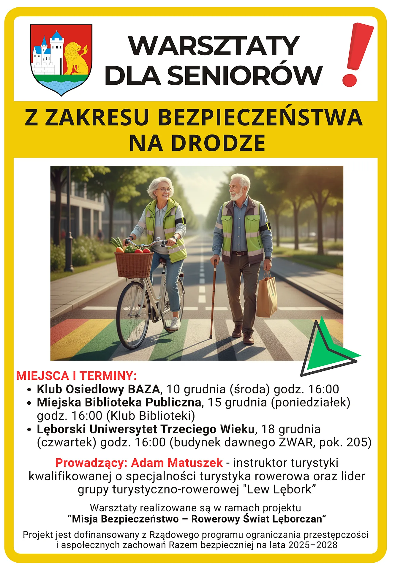 Zadbaj o swoje bezpieczeństwo i pewność na drodze – zarówno jako pieszy, jak i rowerzysta! Serdecznie zapraszamy wszystkich Seniorów na wyjątkowe i praktyczne warsztaty, które pozwolą Wam poczuć się pewniej i bezpieczniej w codziennym ruchu drogowym. To idealna okazja, by odświeżyć wiedzę i poznać najnowsze przepisy!