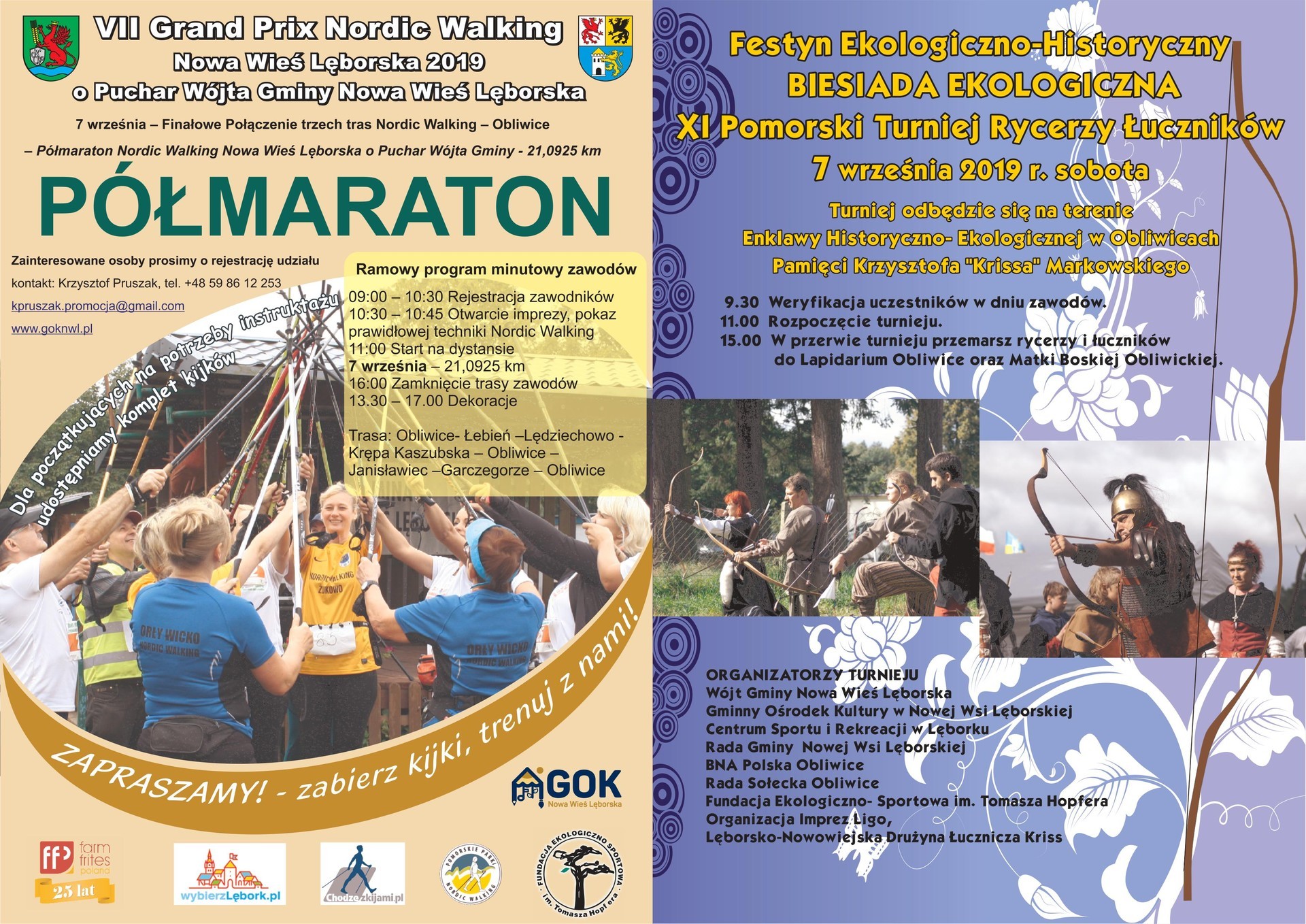 Gmina Nowa Wieś Lęborska i Gminny Ośrodek Kultury w Nowej Wsi Lęborskiej zapraszają w sobotę 7 września na Biesiadę Ekologiczną, Festyn Ekologiczno-Historyczny i XI Pomorski Turniej Rycerzy Łuczników, a także VII Grand Prix Nordic Walking o Puchar Wójta Gminy Nowa Wieś Lęborska. Impreza odbędzie się tradycyjnie w Obliwicach.
