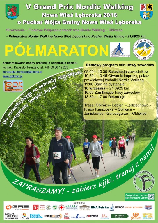 GOK w Nowej Wsi Lęborskiej i Fundacja Ekologiczno-Sportowa im. T. Hopfera zapraszają 10 września (sobota) do Obliwic na Półmaraton Nordic Walking i Biesiadę Ekologiczną. Zawody rozpoczną się o godz. 10.30, początek Biesiady o 17.30. W programie również Jesienna Biesiada Malarzy, VII Międzynarodowy Wielki Turniej Łuczniczo-Rycerski pamięci Krzysztofa Markowskiego.