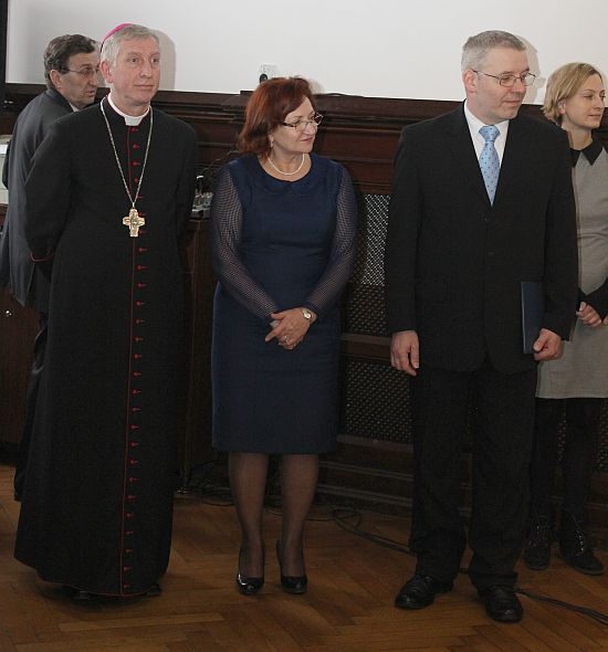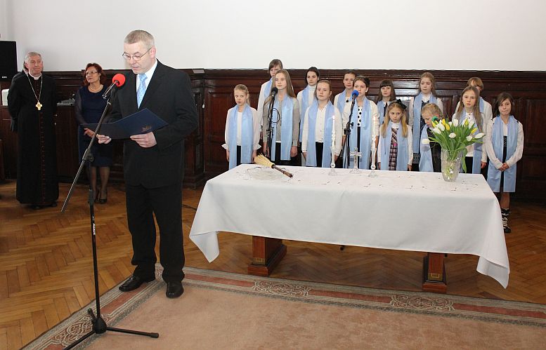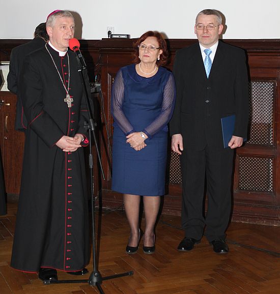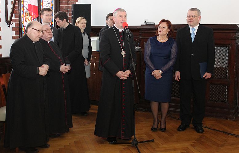 Burmistrz Lęborka Witold Namyślak podziękował Ks. biskupowi za kontynuowanie tradycji wizyt kolędowych zapoczątkowanej przed laty przez zmarłego niedawno ks. bpa Jana Bernarda Szlagę i przybycie do Lęborka.