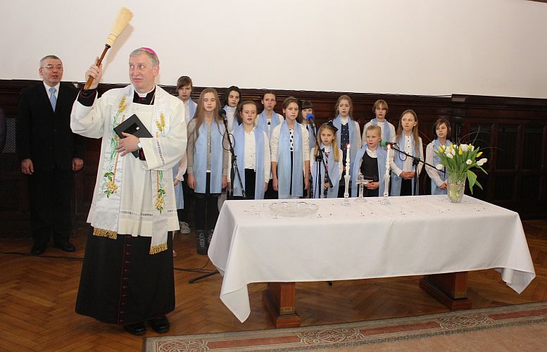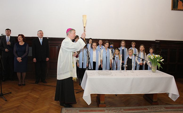 Ksiądz biskup Ryszard Kasyna udzieli błogosławieństwa kolędowego na cały rok 2013 oraz złożył życzenia na nowy rok uczestnikom spotkania oraz wszystkim mieszkańcom Lęborka.