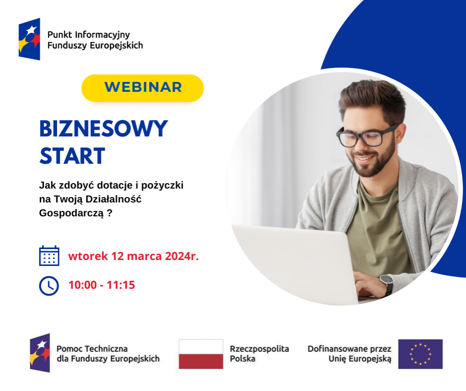 Biznesowy Start - Jak zdobyć dotacje i pożyczki na Twoją Działalność Gospodarczą? - Webinarium - 12 marca 2024 r.