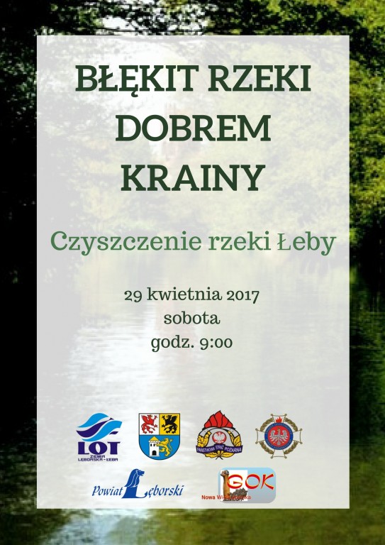 29 kwietnia br. odbędzie się dziewiąta edycja akcji "Błękit rzeki dobrem Krainy", która ma na celu przygotowanie rzeki Łeby do zbliżającego się sezonu turystycznego. Przedsięwzięcie organizują LOT "Ziemia Lęborska - Łeba", Zarząd Powiatowy Związku Ochotniczych Straży Pożarnych oraz Komenda Powiatowa Państwowej Straży Pożarnej w Lęborku we współpracy ze Starostwem Powiatowym, urzędami gminnymi w Nowej Wsi Lęb. i Wicku, nowowiejskim Gminnym Ośrodkiem Kultury oraz firmą FamilyDay Spływy Kajakowe.