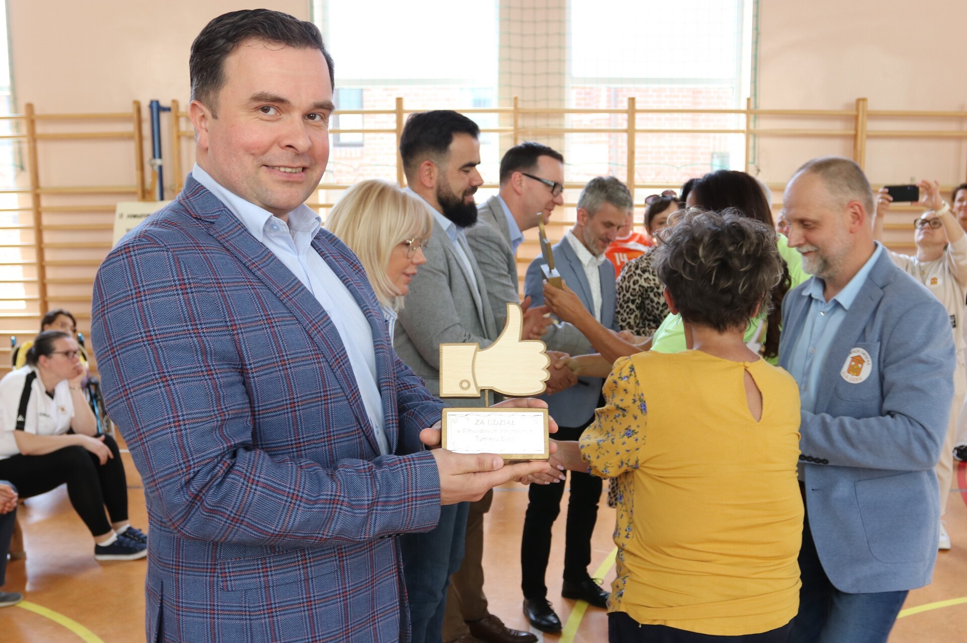 Organizatorzy nie zapomnieli o samorządowcach – każdy z nich otrzymał pamiątkową statuetkę. W reprezentacji Urzędu Miejskiego zagrali: Zastępca Burmistrza Krzysztof Król, Sekretarz Miasta Sławomir Tutakowski i radna Rady Miejskiej Magdalena Miedzińska. Barwy Powiatu Lęborskiego reprezentowali Starosta Lęborski Tomasz Litwin, Wicestarosta Adrian Wenta oraz Sekretarz Powiatu Danuta Fedyniak. Tydzień wcześniej obie drużyny odbyły wspólny trening – efekt? Fantastyczna atmosfera i wyrównana walka na boisku!