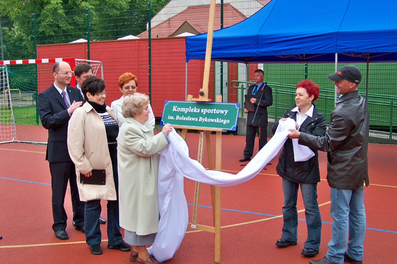 Inicjatywa nadania imienia Bolesława Bykowskiego lęborskiemu Orlikowi wyszła od Społecznego Komitetu Inicjatywnego reprezentowanego przez absolwentów Liceum Ogólnokształcącego nr 1: Ewę Piotrowską, Jadwigę Przybyłę- Gierasimczyk, Aleksandrę Baltaziuk, Jacka Bednarkiewicza. Znalazła ona nie tylko poparcie radnych Rady Miejskiej w Lęborku, ale miała także szeroki oddźwięk społeczny. Bolesław „Bolo” Bykowski, chociaż urodził się w Tarnopolu na Podolu, był oddanym całym swoim życiem Lęborkowi i Powiatowi Lęborskiemu mieszkańcem Lęborka. Był jednym z najbardziej znanych lęborczan, nie tylko lubianym i szanowanym wuefistą, ale także wieloletnim trenerem, organizatorem klubów sportowych i budowniczym boisk w Lęborku i powiecie. Wyróżniał się tytaniczną pracowitością. Był zawsze wśród młodzieży, wśród swoich podopiecznych, których uczył nie tylko, jak osiągać doskonałe wyniki sportowe, ale także jak kształtować silny charakter i silną osobowość oraz jak godnie żyć. Bolesław „Bolo” Bykowski był skromnym dobrym człowiekiem, który znalazł swoich godnych naśladowców w rzeszy sportowców, często sportowych mistrzów mogących poszczycić się znakomitymi wynikami w różnych dyscyplinach sportowych.