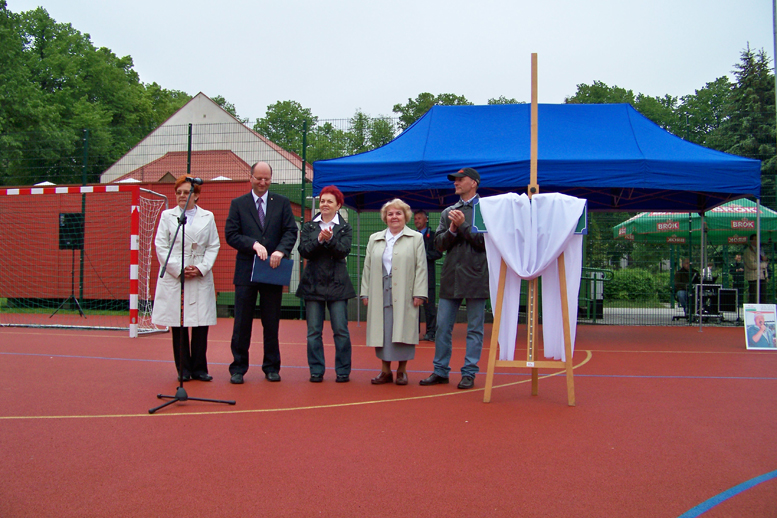 Po odsłonięciu tablicy pamiątkowej trafiła ona na parkan obiektu. W tym czasie odtworzono z płyty najbardziej ulubioną piosenkę Bolesława Bykowskiego „Kwiaty Polskie”.