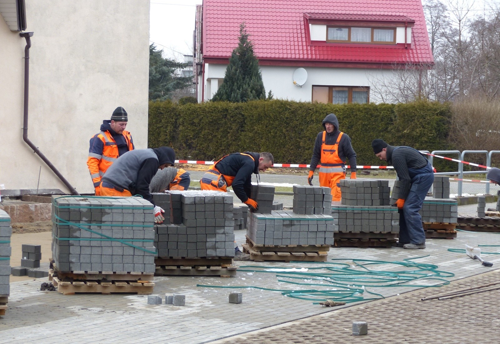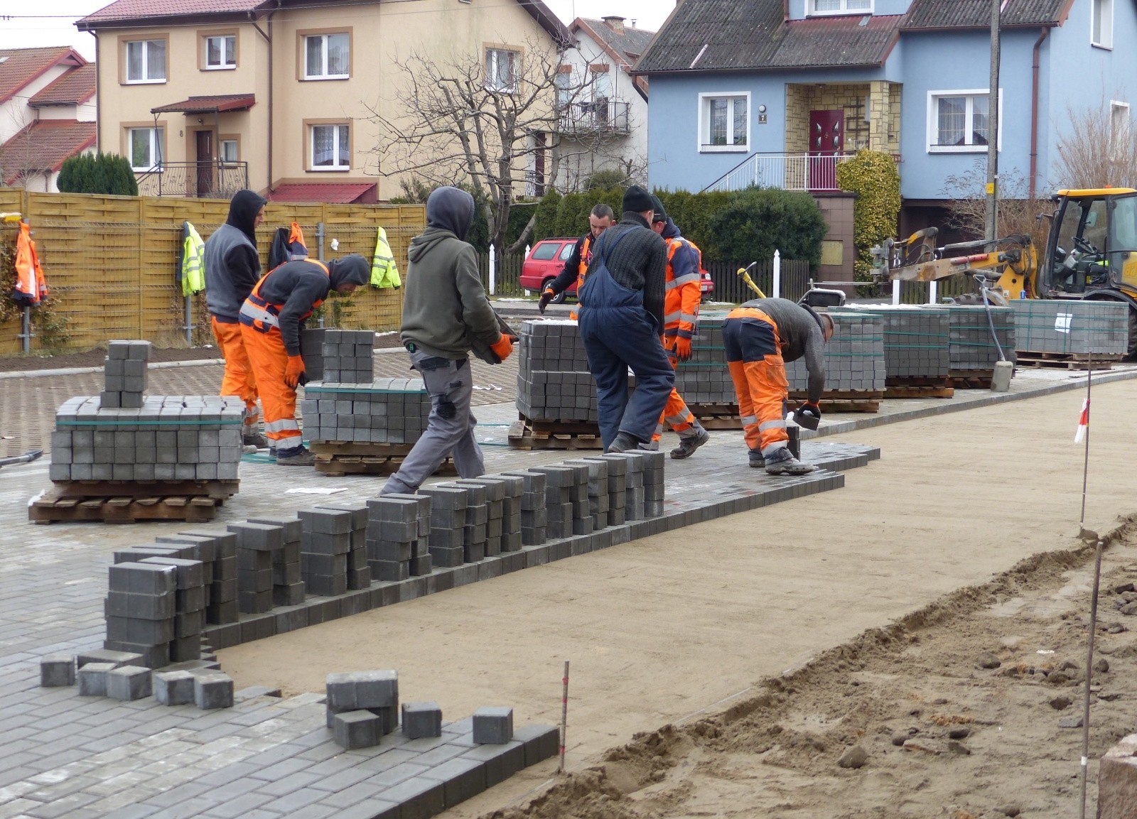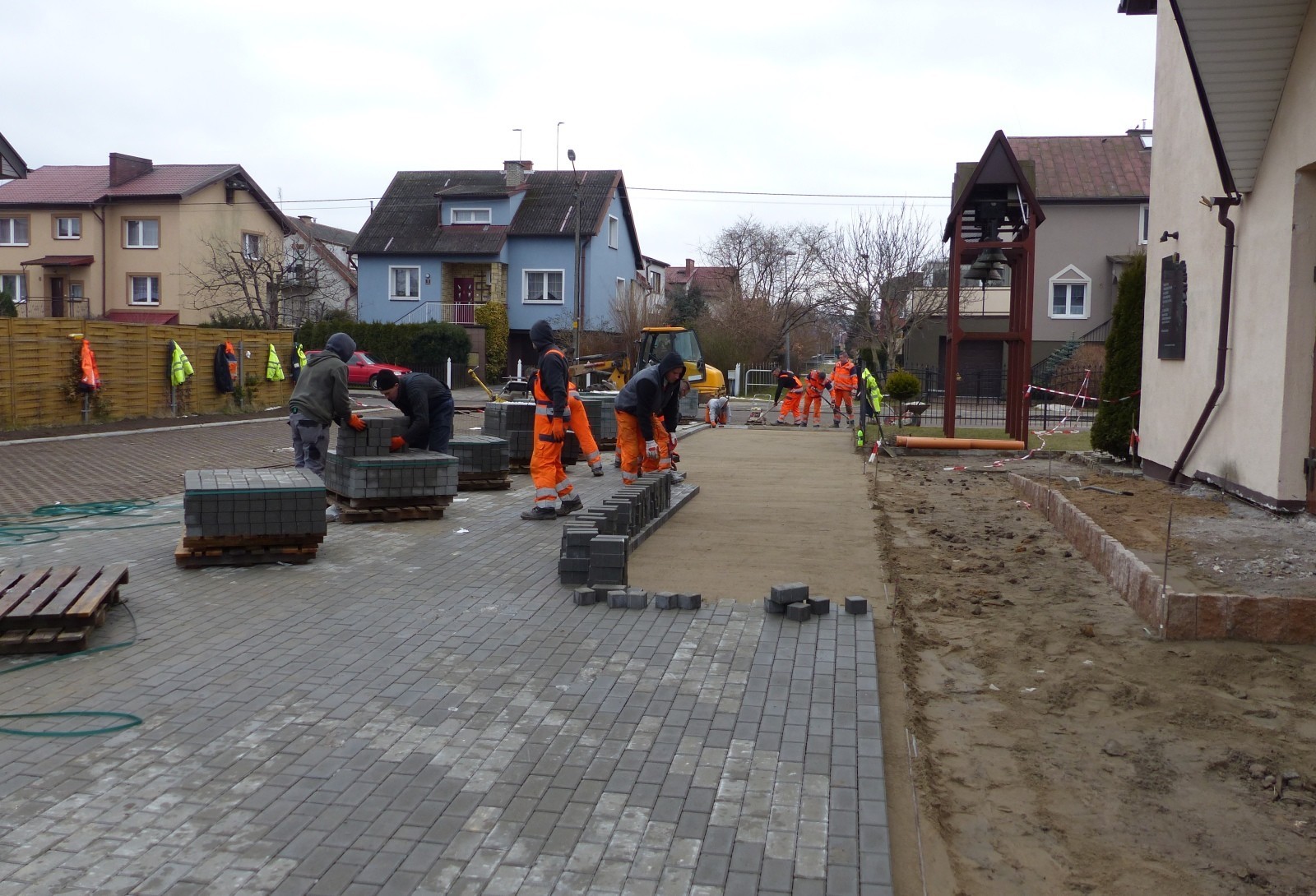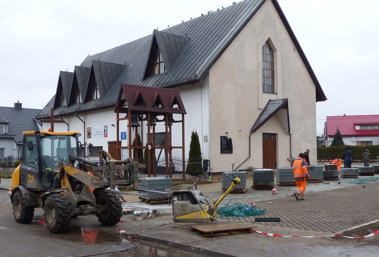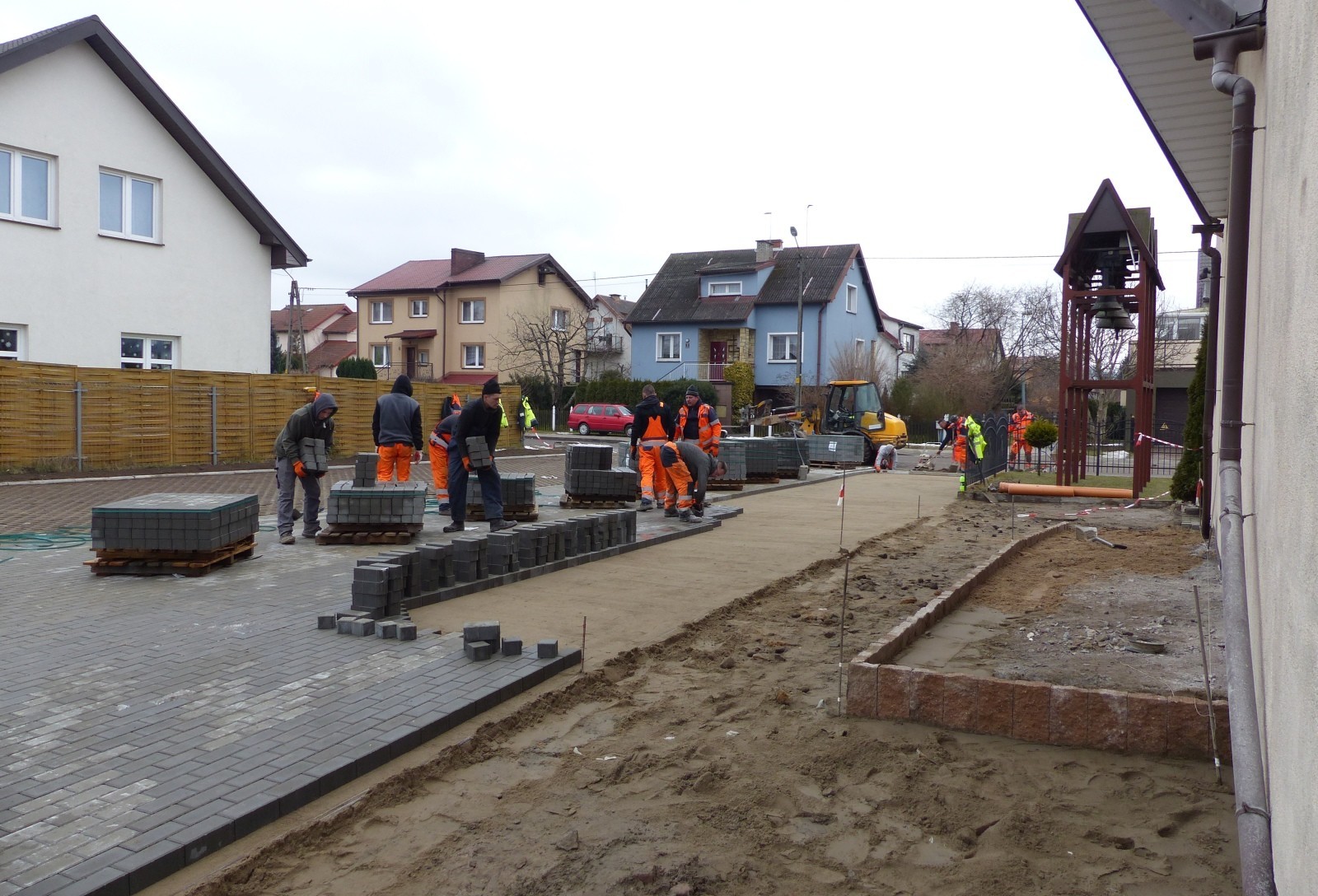 Trwa budowa drogi dojazdowej i parkingu przy ul. Kasztanowej przed kościołem pw. Miłosierdzia Bożego. Miejsca postojowe wyłożone będą płytami ażurowymi, droga dojazdowa szarą kostką betonową. Drogową inwestycję wykonuje lokalna firma MAXBRUK.