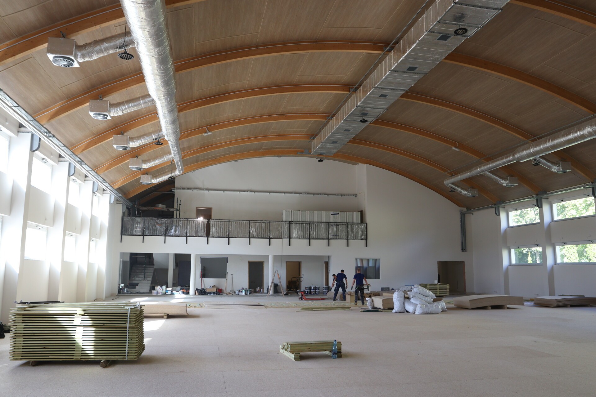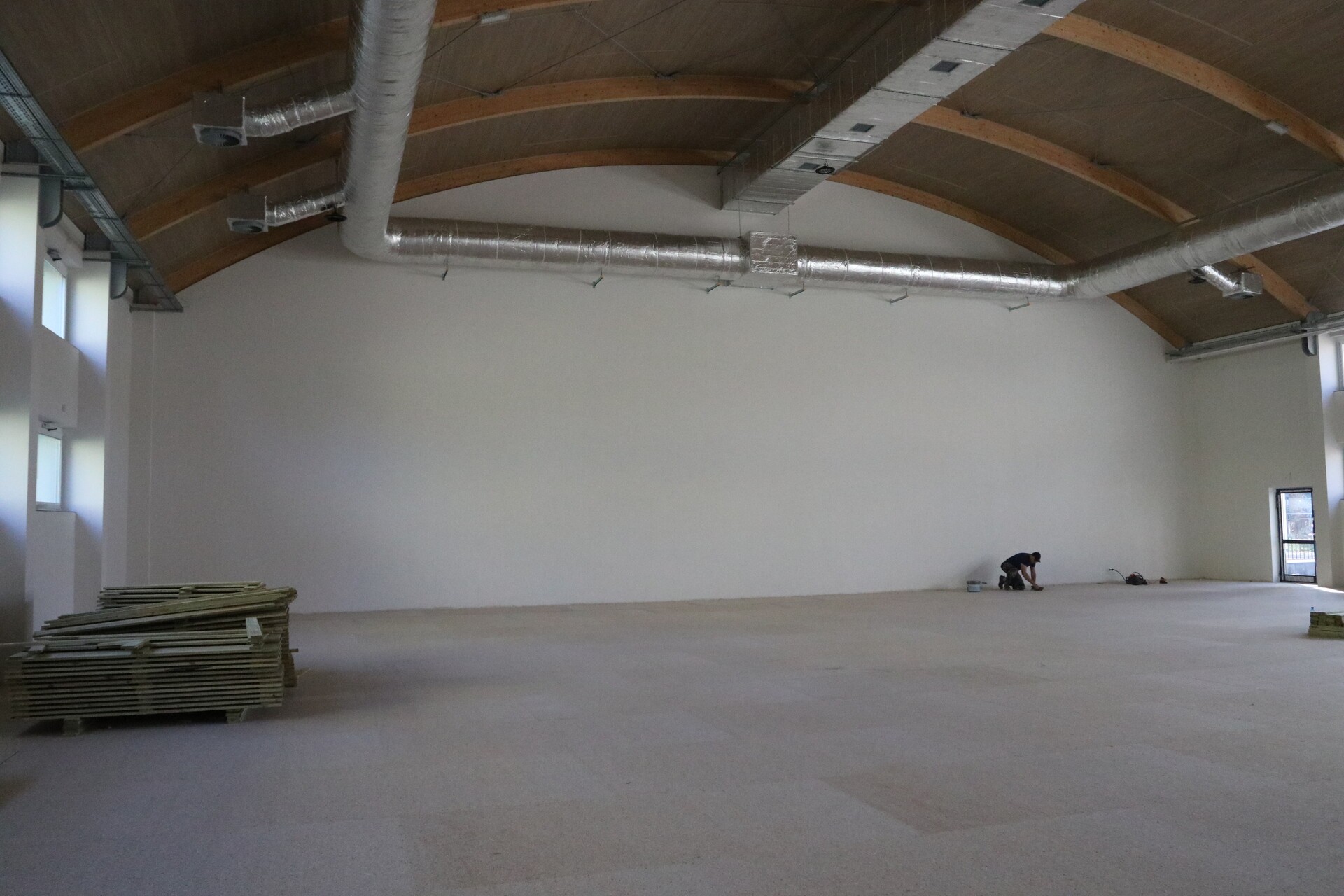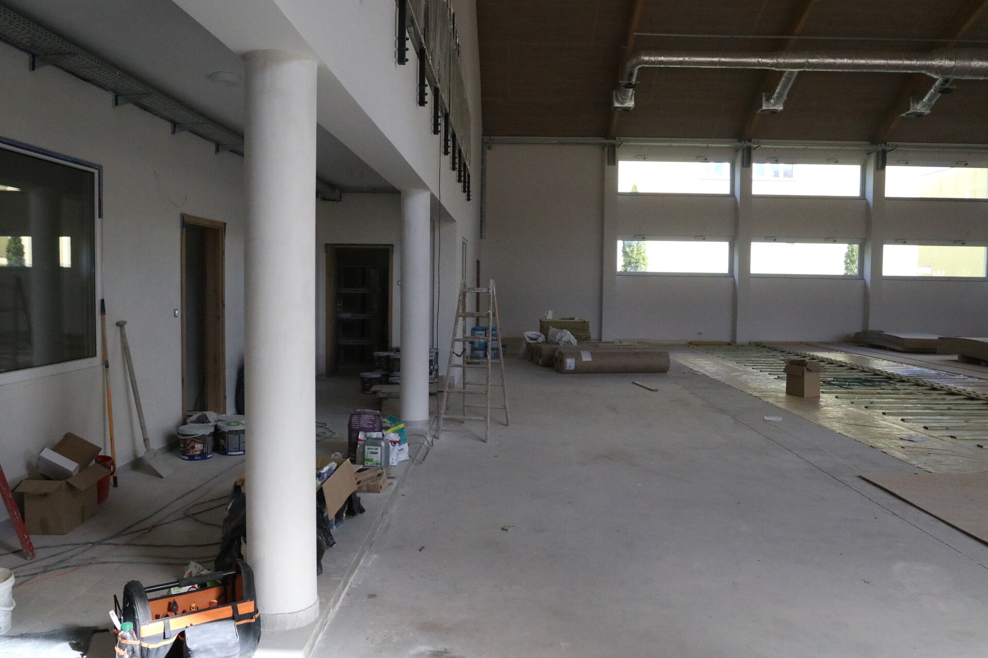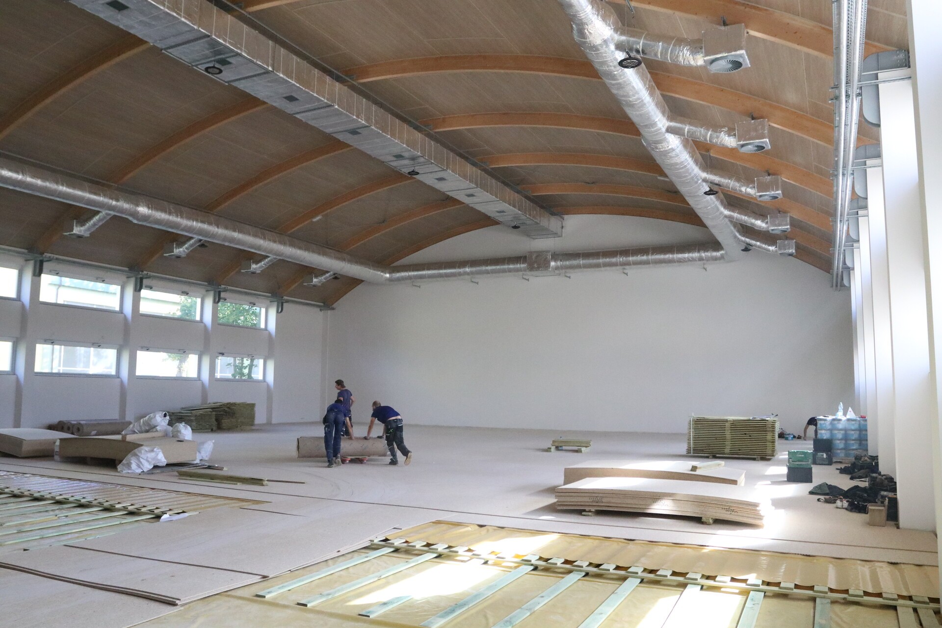 Ostatnie prace to montaż na posadzce specjalnej nawierzchni sportowej o właściwościach amortyzujących. W kolejnych tygodniach planowane jest wyposażenie obiektu w sprzęt do prowadzenia zajęć, zagospodarowanie terenu wokół hali oraz obowiązkowe odbiory.