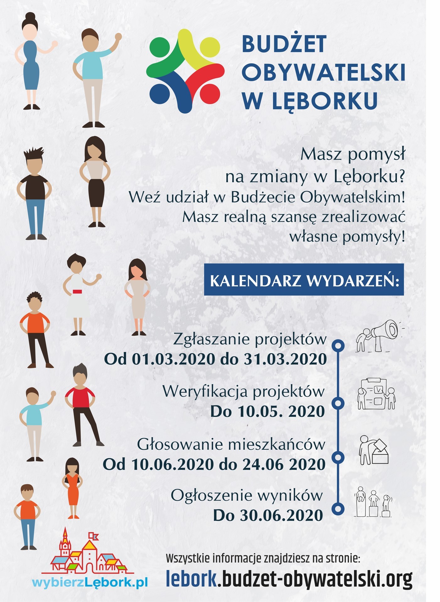 Formularze zgłoszenia projektu będą dostępne w kancelarii ogólnej Urzędu Miejskiego w Lęborku, ul. Armii Krajowej 14 oraz na stronach internetowych: lebork.budzet-obywatelski.org oraz bip.um.lebork.pl w zakładce „Budżet Obywatelski”.