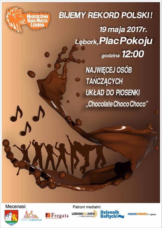 W dniu 19 maja 2017 roku na Placu Pokoju w Lęborku odbędzie się próba bicia Rekordu Polski w tańczeniu układu choreograficznego do piosenki „Chocolate choco choco”. Od godziny 11.30 do 12.00 będą trwały nieoficjalne próby, natomiast w samo południe rozpocznie się próba oficjalna. Układ choreograficzny już od tygodni ćwiczą przedszkolaki oraz uczniowie lęborskich szkół i przedszkoli.