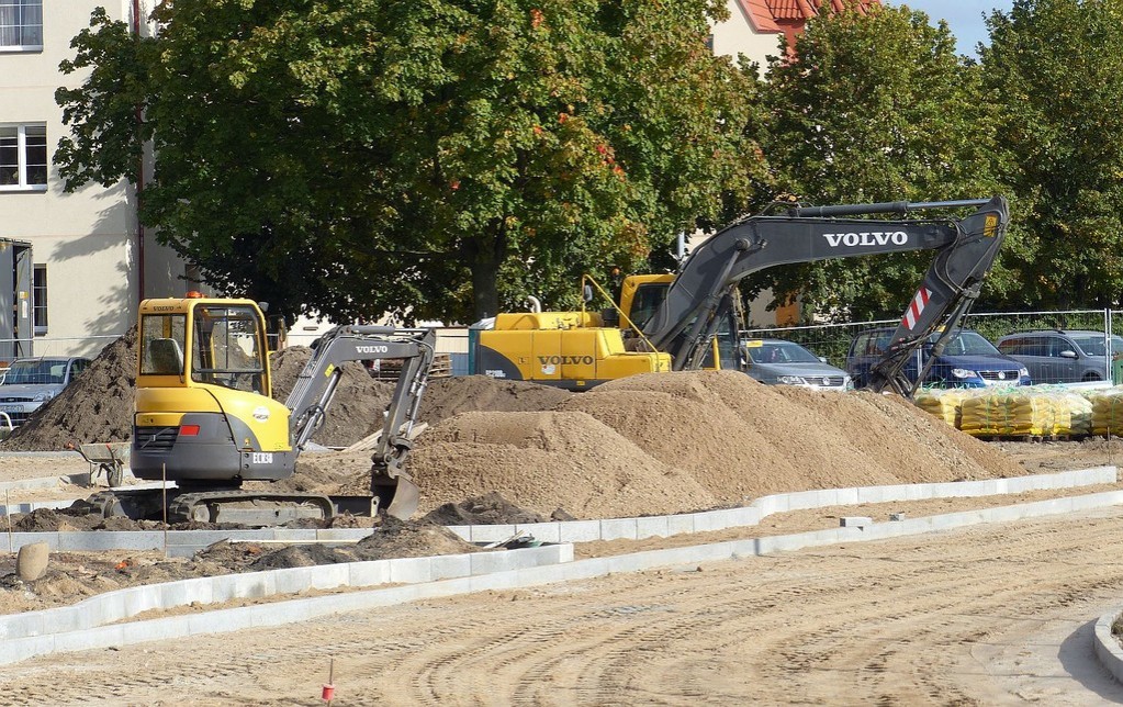 Ciężki sprzęt na boisku. Kompleks sportowy w budowie