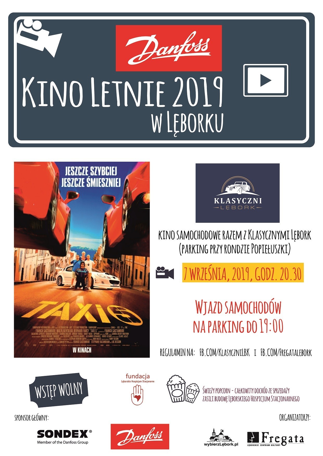 Sobota, 7 września, Parking u zbiegu ulic Kossaka i Przyzamcze (obok sądu) - samochodowe kino letnie razem z Klubem Klasyczni Lębork