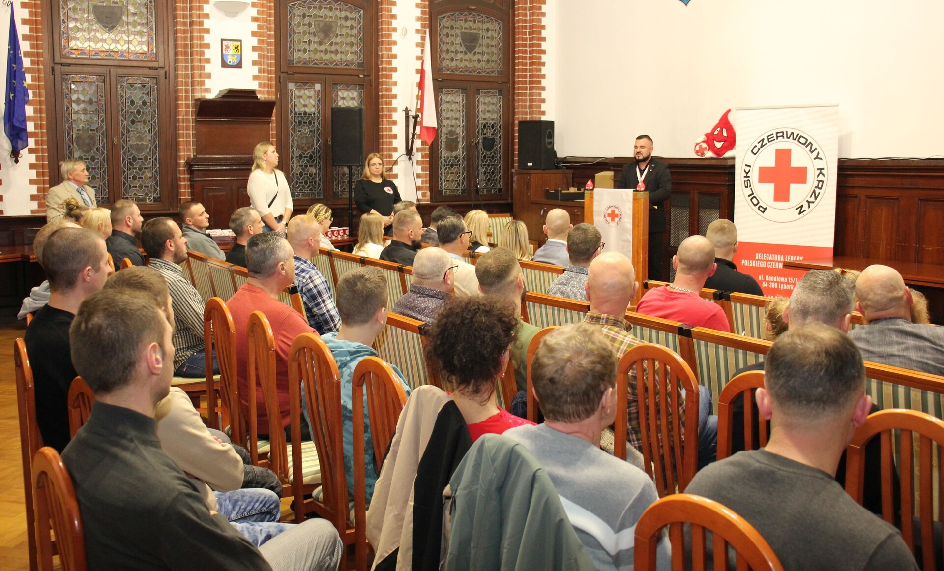 W Sali Rajców lęborskiego ratusza odznaką "Zasłużony Honorowy Dawca Krwi I Stopnia" (mężczyźni 18 litrów i więcej, kobiety 15 litrów i więcej) docenieni zostali: Paulina Kuberna, Małgorzata Wos, Grzegorz Gościński, Paweł Jankowski, Daniel Kotecki, Mateusz Krawczyk, Krzysztof Labuda, Piotr Lawrenc, Kamil Litwin, Damian Łapa, Piotr Maksymowicz, Piotr Pilarz, Andrzej Pirch, Jakub Pirycki, Grzegorz Płoński, Mariusz Wiśniewski.