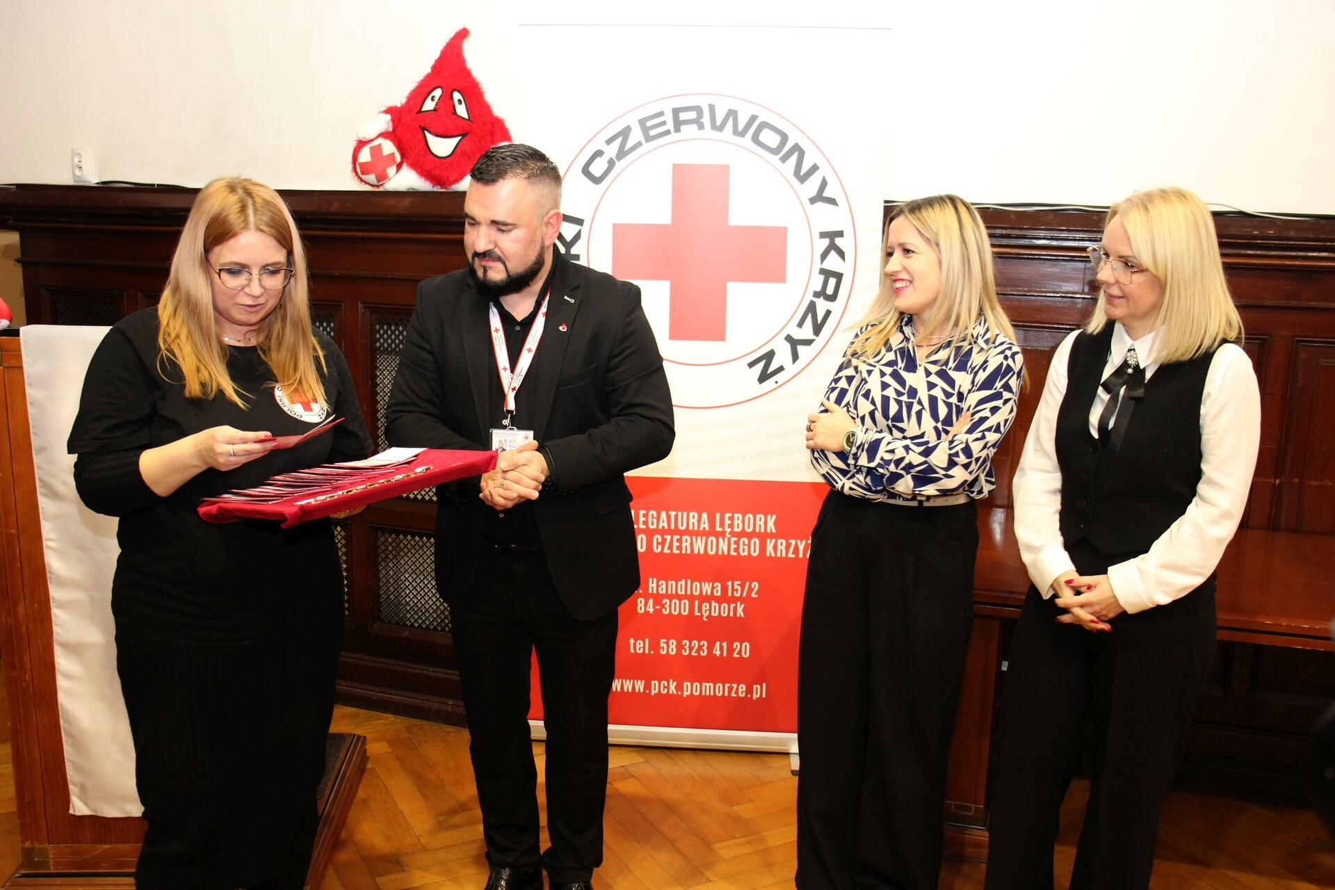 Oddział Rejonowy Polskiego Czerwonego Krzyża w Lęborku był w czwartek, 5 grudnia organizatorem Gali Krwiodawców. W Urzędzie Miejskim uhonorowani odznaczeniami zostali zasłużeni dawcy krwi. Odznaczenia wręczał prezes Oddziału Rejonowego PCK w Lęborku i Okręgowy Koordynator ds. Komunikacji i Pozyskiwania Dochodów na terenie Pomorza Patryk Bianga, burmistrz miasta Lęborka Jarosław Litwin, starosta lęborski Tomasz Litwin oraz radne i radni miejscy Magdalena Miedzińska, Małgorzata Bizewska i Łucjan Łaga. Odznaczonym samorządowcy przekazali gratulacje, podziękowania i życzenia.