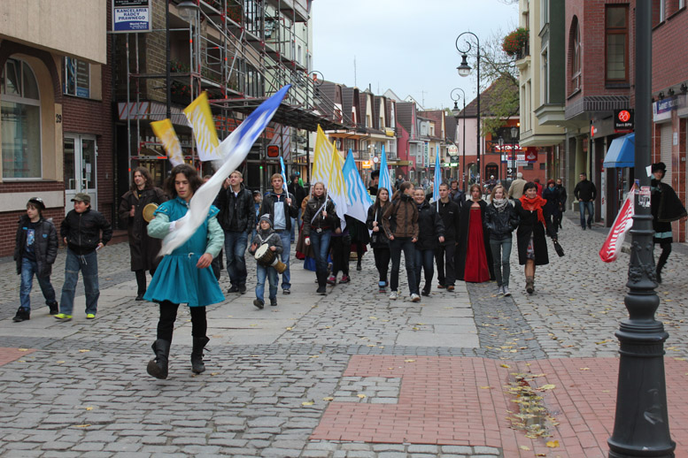 O godzinie 17 z ulicy Staromiejskiej wzdłuż średniowiecznych obwarowań przemaszerował barwny korowód. Przewodnikiem po obwarowaniach był Zachariasz Frącek. Korowód przeszedł ulicami Skłodowskiej, Korczaka, Findera, Basztową, odwiedzając i zwiedzając po drodze basztę nr 32 o której opowiadali członkowie Bractwa Rycerskiego Hufca Przedniego Wójtostwa Lębork.