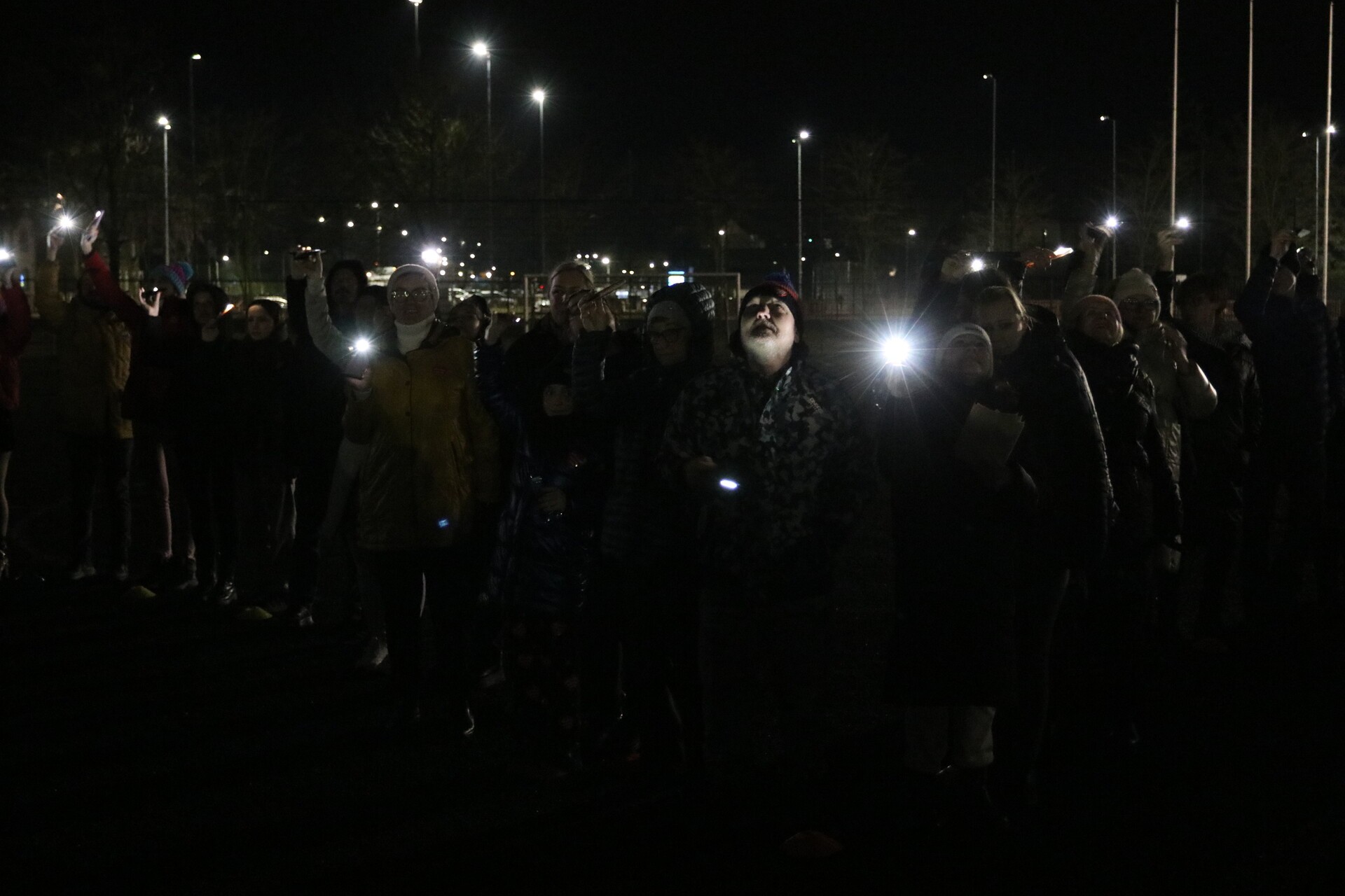 Na boisku przy hali miejskiej w ramach przedsięwzięcia poprowadzonego przez Patryka Biangę „Lęborskie serce, które łączy” mieszkańcy wypuścili „Światełko do nieba”.