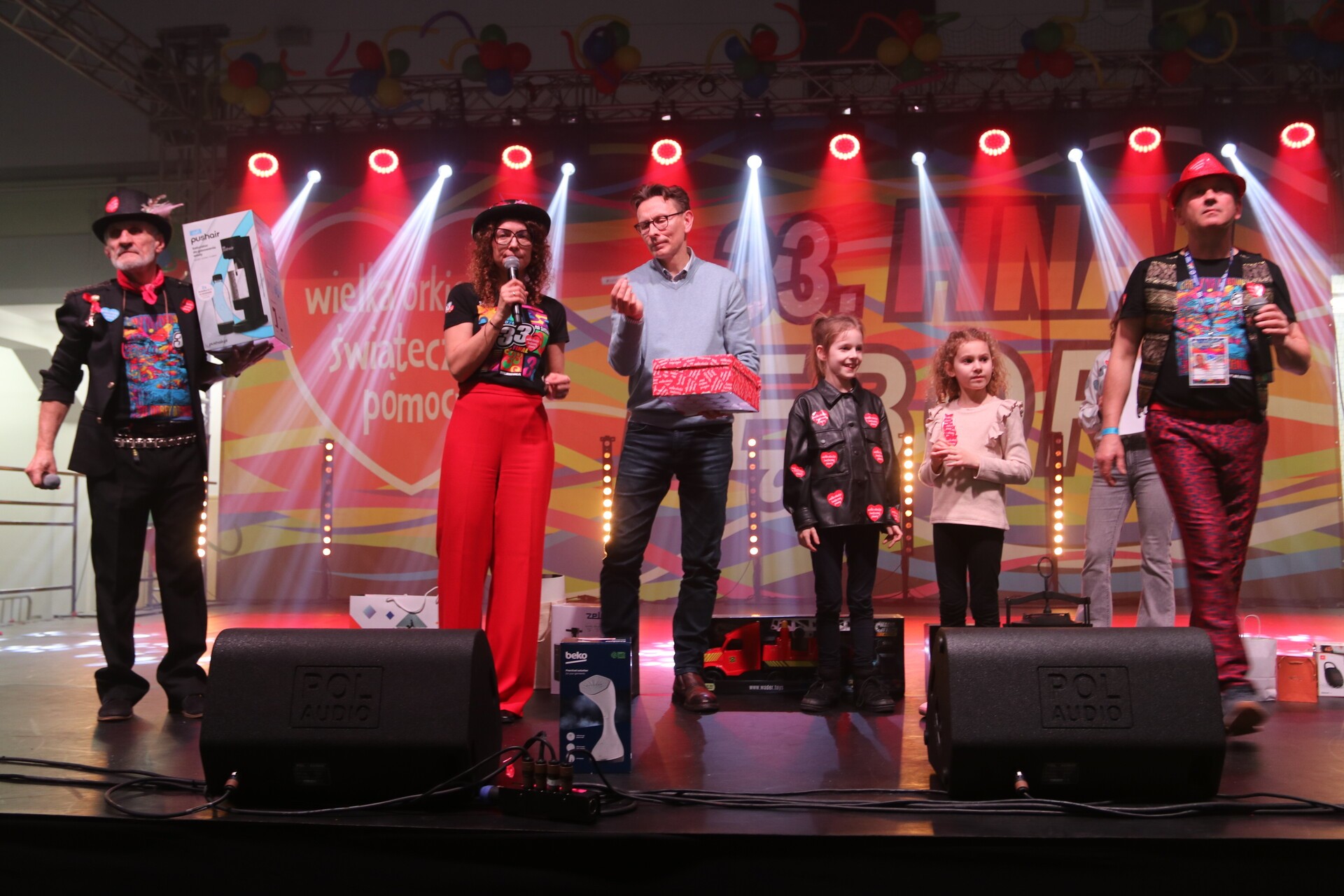 Wieczorem na scenie odbyło się losowanie fantów głównych loterii fantowej 33. Finału WOŚP. Wszyscy, którzy zakupili los za 5 zł i mieli odrobinę szczęścia cieszyli się ze zdobycia jednej z nagród głównych a były nimi m.in. słuchawki, zestawy promocyjne z lęborskich firm i instytucji, głośnik mobilny, słuchawki douszne, wyciskarka wolnoobrotowa, smartband, mop parowy, parownica, blender, saturator, voucher na weekendowy pobyt w ośrodku Promenada w Jastrzębiej Górze oraz wiele innych atrakcyjnych zestawów przygotowanych przez naszych darczyńców.