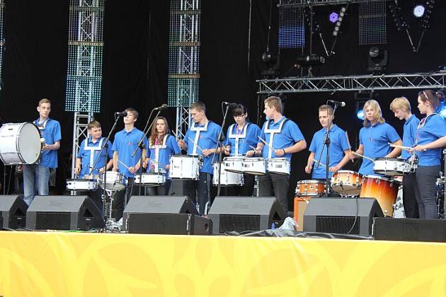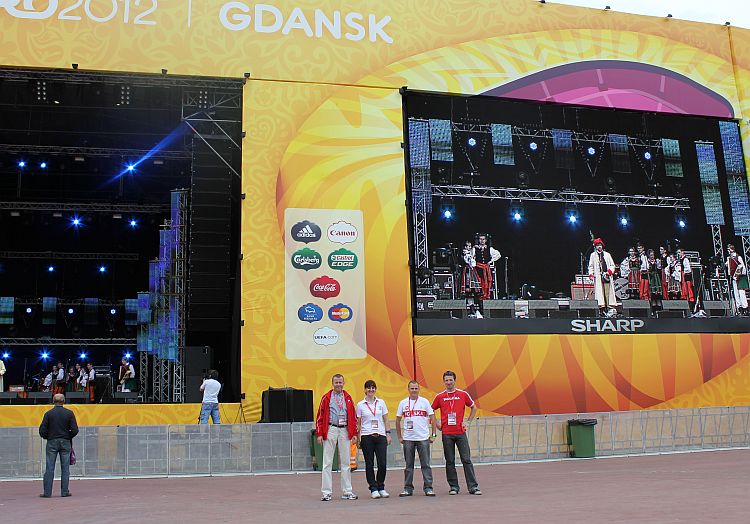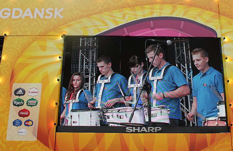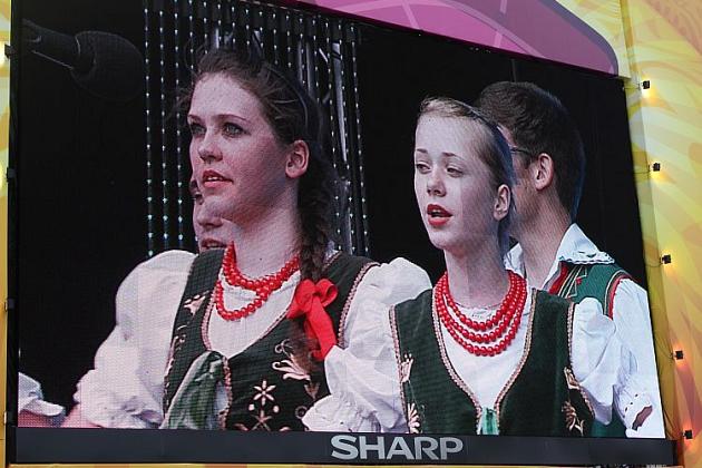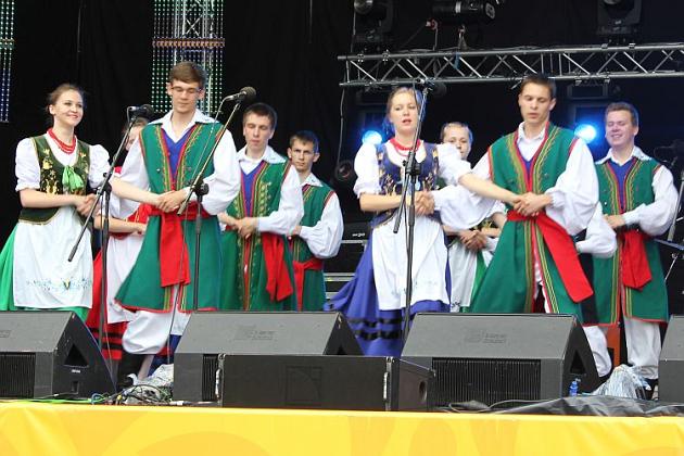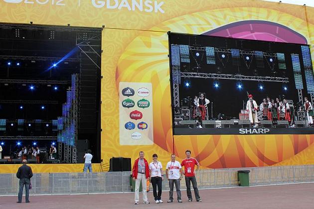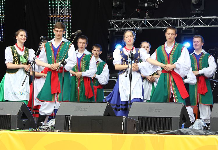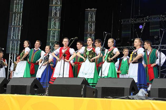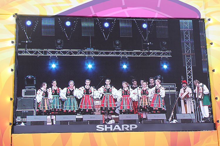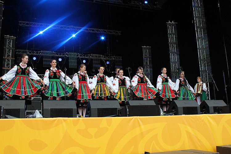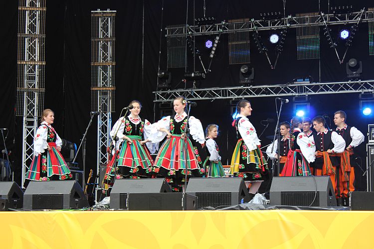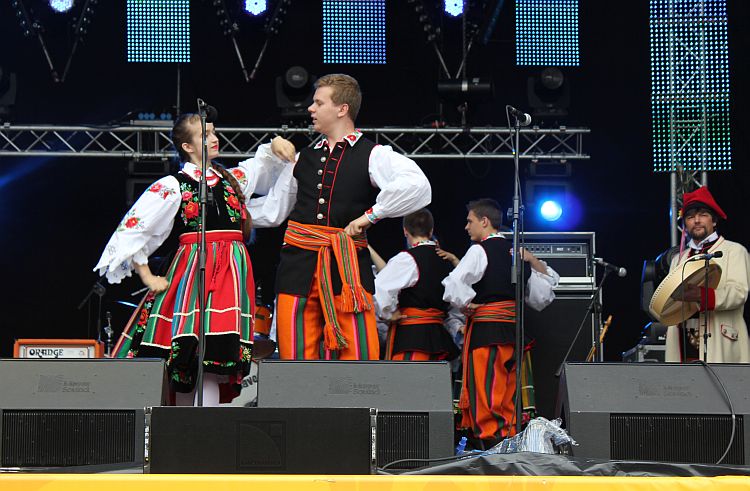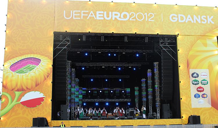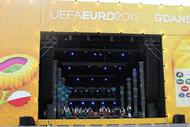 Na scenie królowały transmitowane na telebimach po całej Fan Zonie lęborskie zespoły. Zespół Pieśni i Tańca „Ziemia Lęborska" zaprezentował blok narodowy z wiązanką piosenek krakowskich śpiewanych przez Andrzeja Wentę i tańce: Kujawiak, Oberek, Polka Łowicka. Kolejny blok prezentował kulturę kaszubską, ostatni morski poświęcony był pracy rybaków z tradycyjnymi tańcami Wołtok, Kuflorz i Dzek.