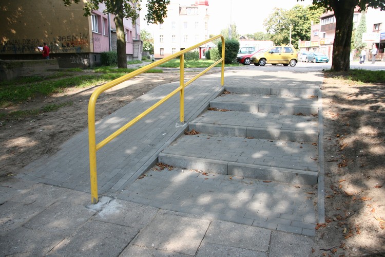 W miejsce dotychczasowego zejścia z betonowych płyt powstało estetyczne, wyłożone kostką brukową, dodatkowo zamontowano metalową poręcz przy podjeździe. Kostką wyłożono ok. 30 m chodnika. Koszt prac wyniósł ok. 7 tys. zł, a wykonała je firma Maxbruk z Lęborka. Ta sama firma wyremontowała mostek dla pieszych łączący ul. Moniuszki z ul. 9 Maja. Wymieniona została cała konstrukcja drewniana wraz w pokładem. Koszt - 8,6 tys. zł.