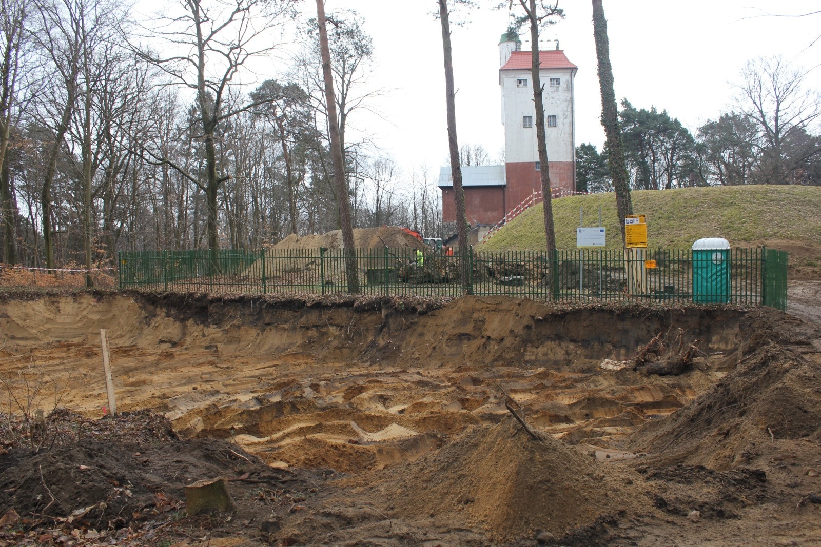 Trwają intensywne prace ziemne przy tzw. Wieży Ciśnień. Przebudowa tego górującego na miastem obiektu w Parku Chrobrego pozwoli na uruchomienie w wieży platformy widokowej oraz umożliwi aranżację wolnych pomieszczeń na inne funkcje. Wokół budynku prowadzone są głębokie wykopy odsłaniające fundamenty budowli. Częściowo odsłonięty został także zbiornik systemu wodociągowego miasta. Dokopano się także do dna starej studni. Pracują przy niej archeolodzy.