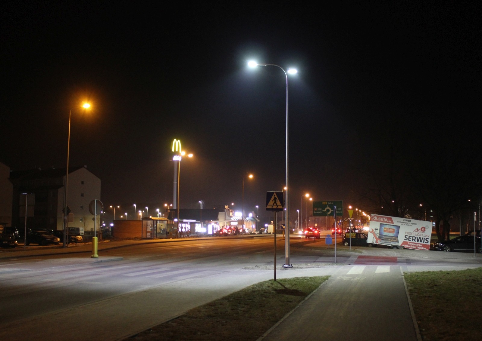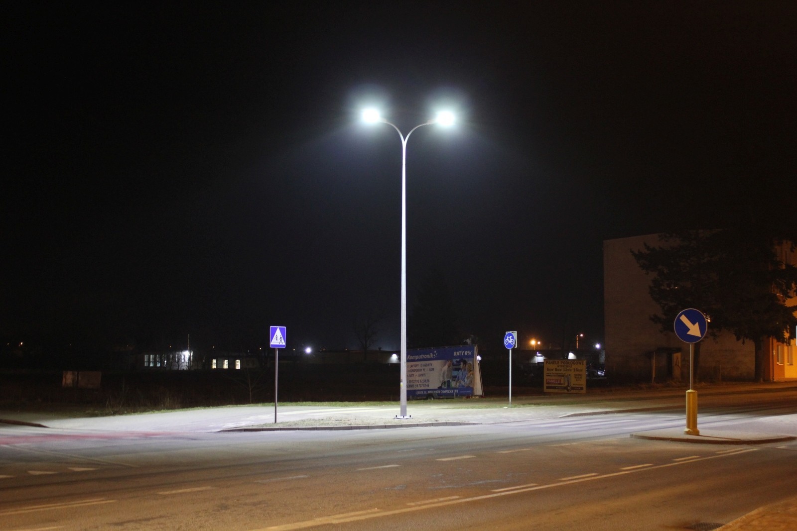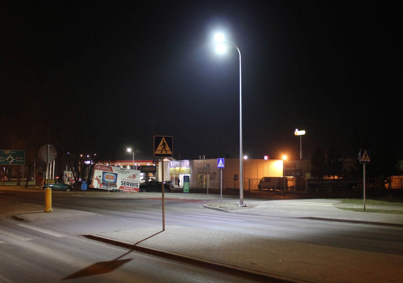 W połowie lutego do użytku oddane zostały nowe lampy przy przejściach dla pieszych w ciągu ulicy Krzywoustego. Po raz pierwszy w naszym mieście przy oświetleniu przejść dla pieszych zastosowano asymetryczne oprawy ledowe emitujące skupiony strumień światła koloru białego. 110 watowe lampy zapewniają skuteczne oświetlenia przejść i znacznie zwiększyły bezpieczeństwo ruchu drogowego.