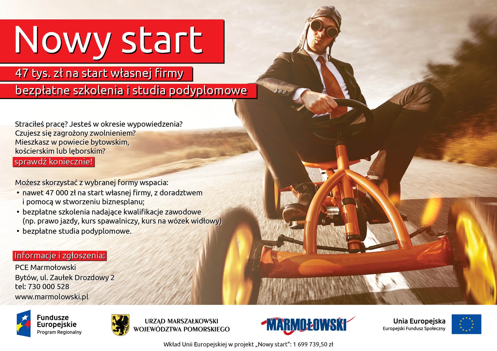 Więcej informacji o projekcie na stronie internetowej www.marmolowski.pl/projekty-unijne/nowy-start/ oraz pod numerem telefonu 730 000 528