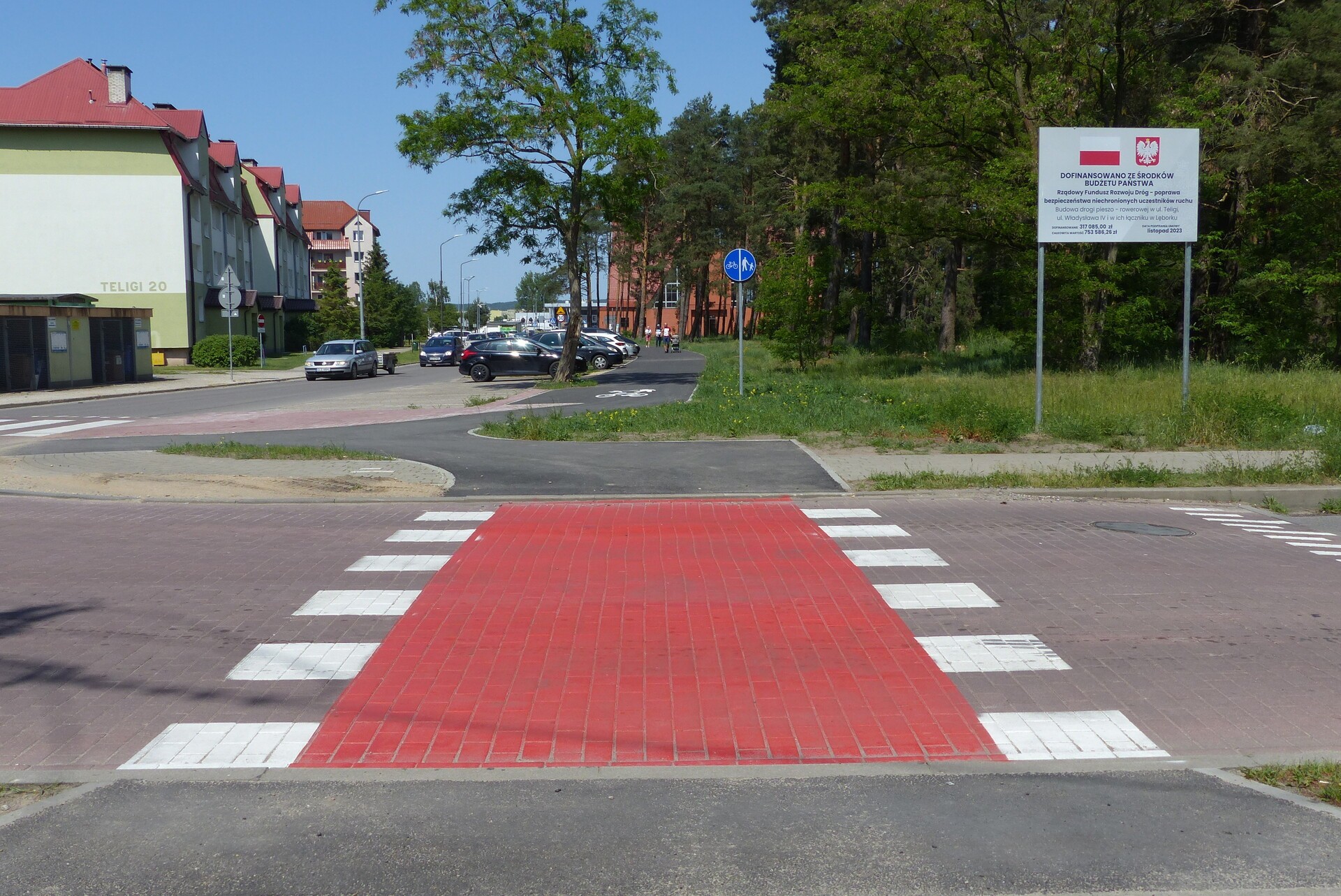 W ramach inwestycji przy lesie powstał 170 metrowy odcinek chodnika wzdłuż ulicy Teligi od ul. Kusocińskiego do kościoła. Wzdłuż lasu przy kościele w kierunku szkoły wybudowano z kolei 310 metrów drogi pieszo-rowerowej zakończonej wyniesionym bezpiecznym skrzyżowaniem. Dalej droga dla pieszych i rowerów prowadzi na odcinku 160 metrów wzdłuż ulicy Władysława IV do ronda z Mieszka I.